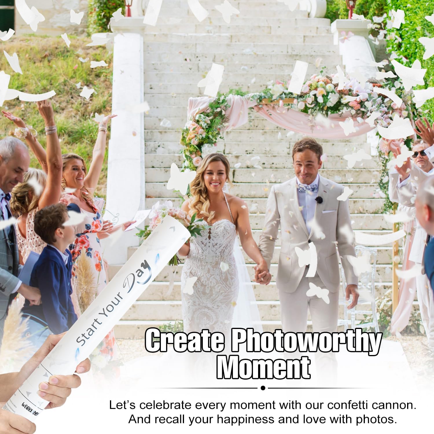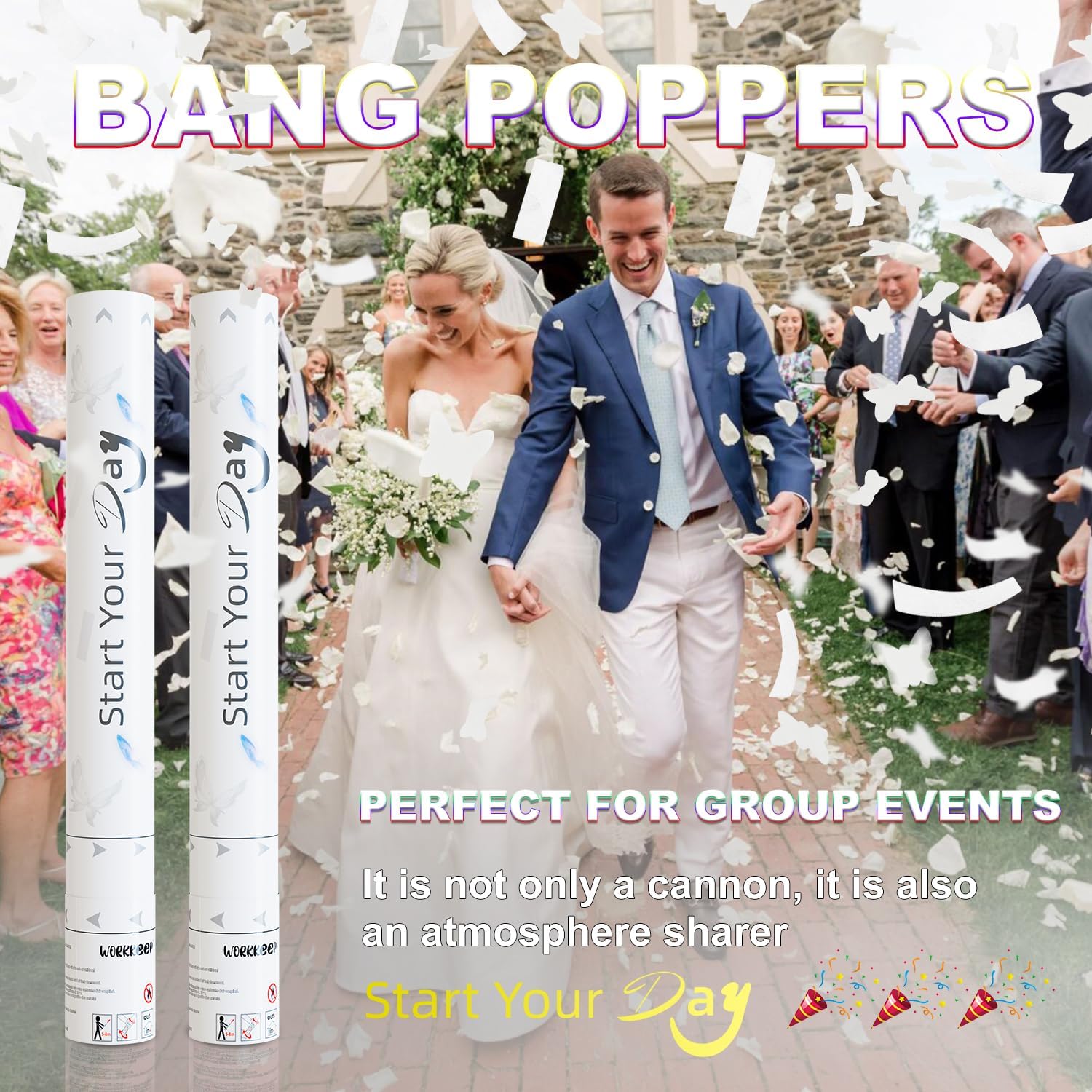 White Butterfly Confetti Poppers, 15 Inch Butterfly Party Poppers for Birthday, Wedding, Halloween Celebrations - Air Powered Confetti Gun