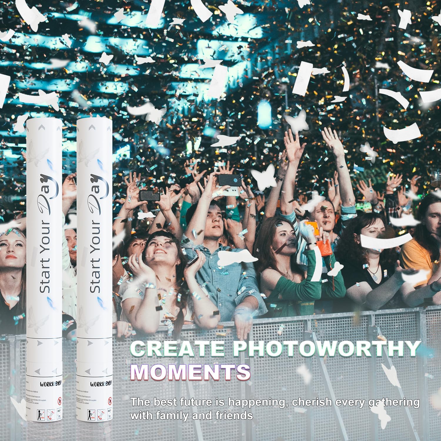 • Happy Celebration: - Each of our Confetti Cannons contains about 3 oz. More White biodegradable paper chips than any other similarly sized product on the market. You're sure to wow friends and family and capture awe-inspiring moments in the air in beautiful vibrant colors.