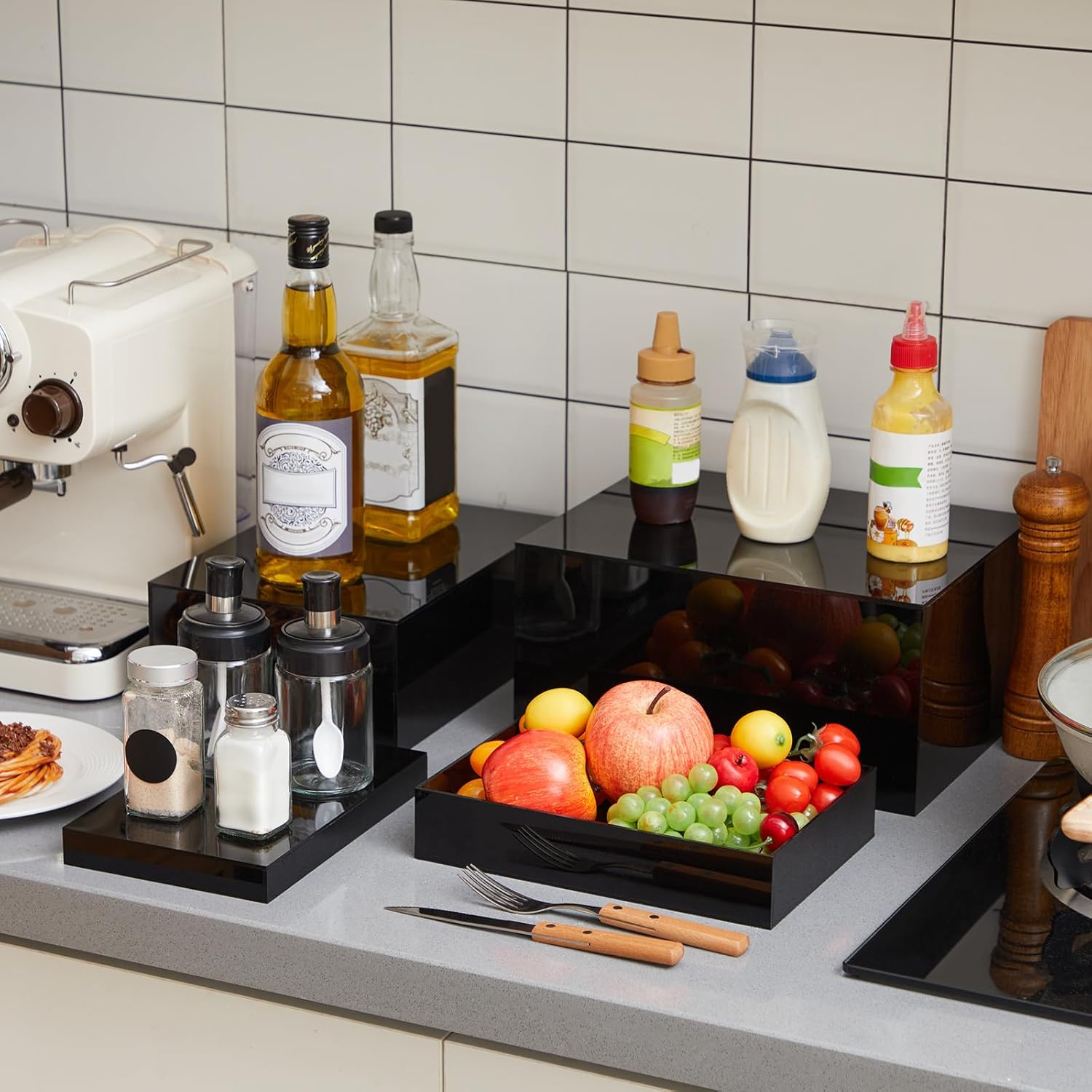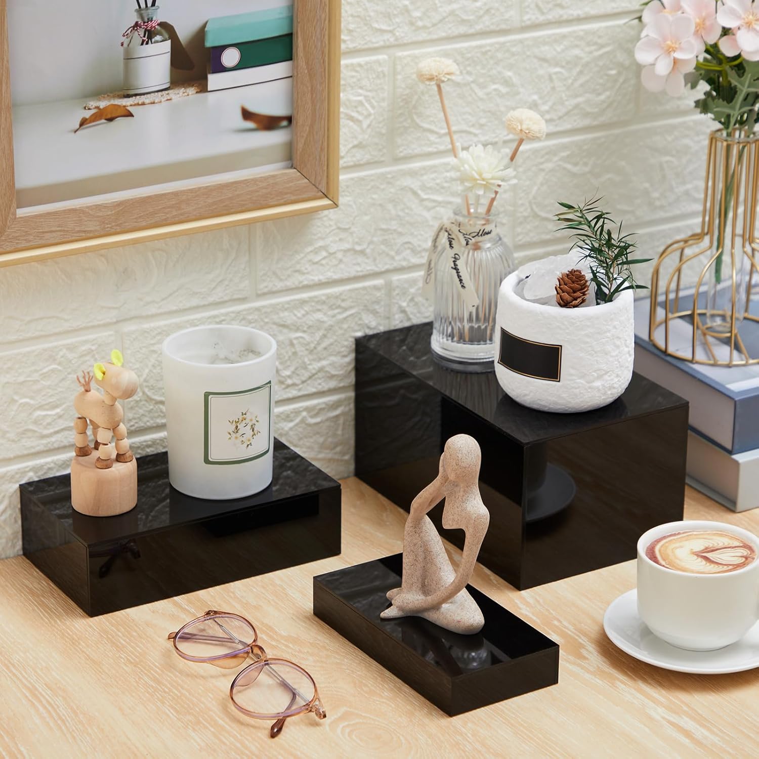 • Black Aesthetics: our acrylic display stands showcase an elegant design; The black color offers an unobstructed view of your displayed items, enhancing their beauty and visibility; Whether it's jewelry, cakes or other products, these cubes ensure they are the center of attention