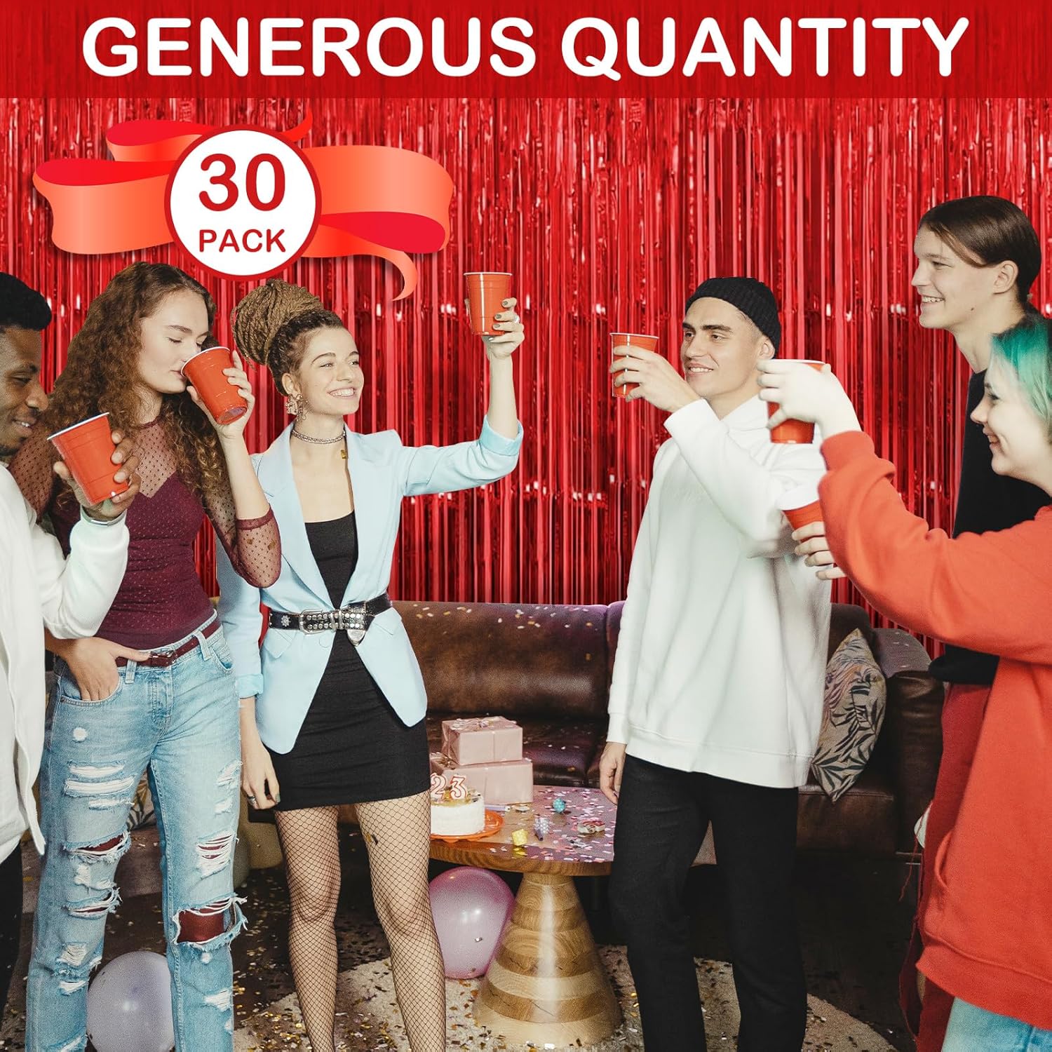 30 Pack Red Foil Fringe Curtain Backdrop, 3.3x8.2 Feet Metallic Tinsel Streamer Curtains Photo Booth Props for Wedding/Anniversary/Bridal Shower/Christmas/New Year/Valentine's Day Party Decorations