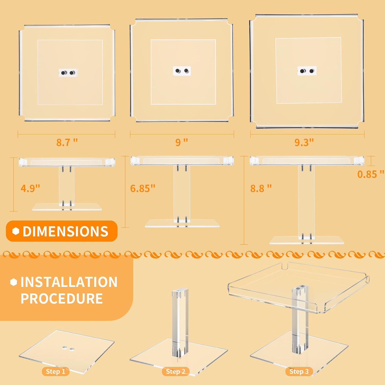 • 【Environmentally and Healthy】Our acrylic 3-tier dessert display racks are made using a hot bending process, so there are no adhesives or chemical odours. This makes them safe for use with food