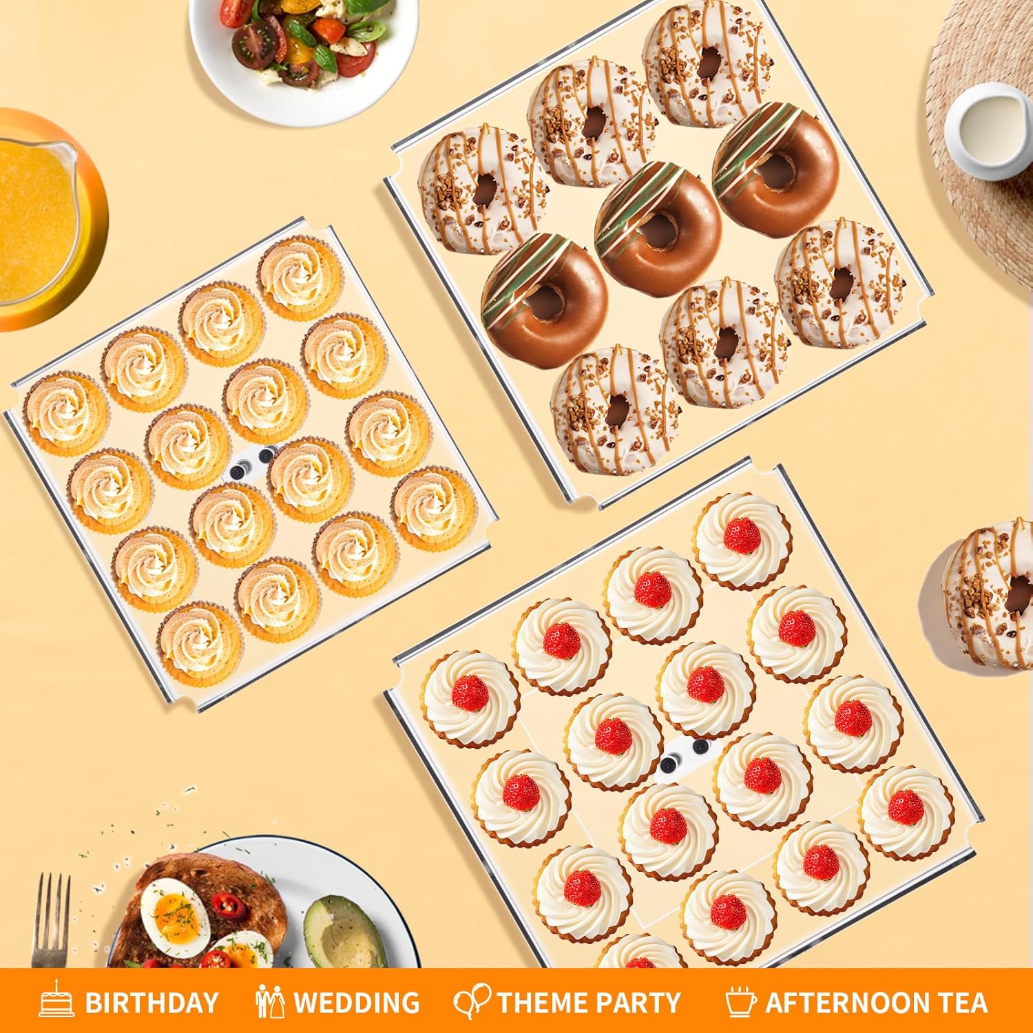 • 【Large Size】The acrylic tray is big enough to hold a lot of food. It can hold at least 54 cupcakes, which is perfect for big events