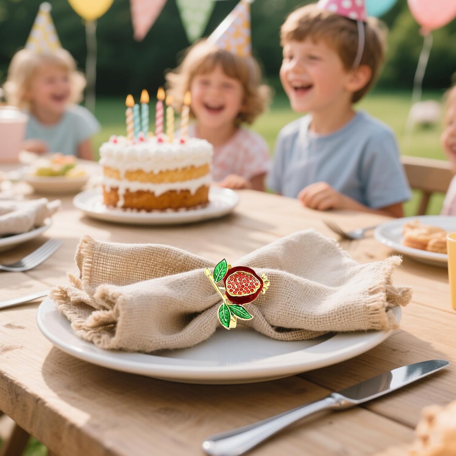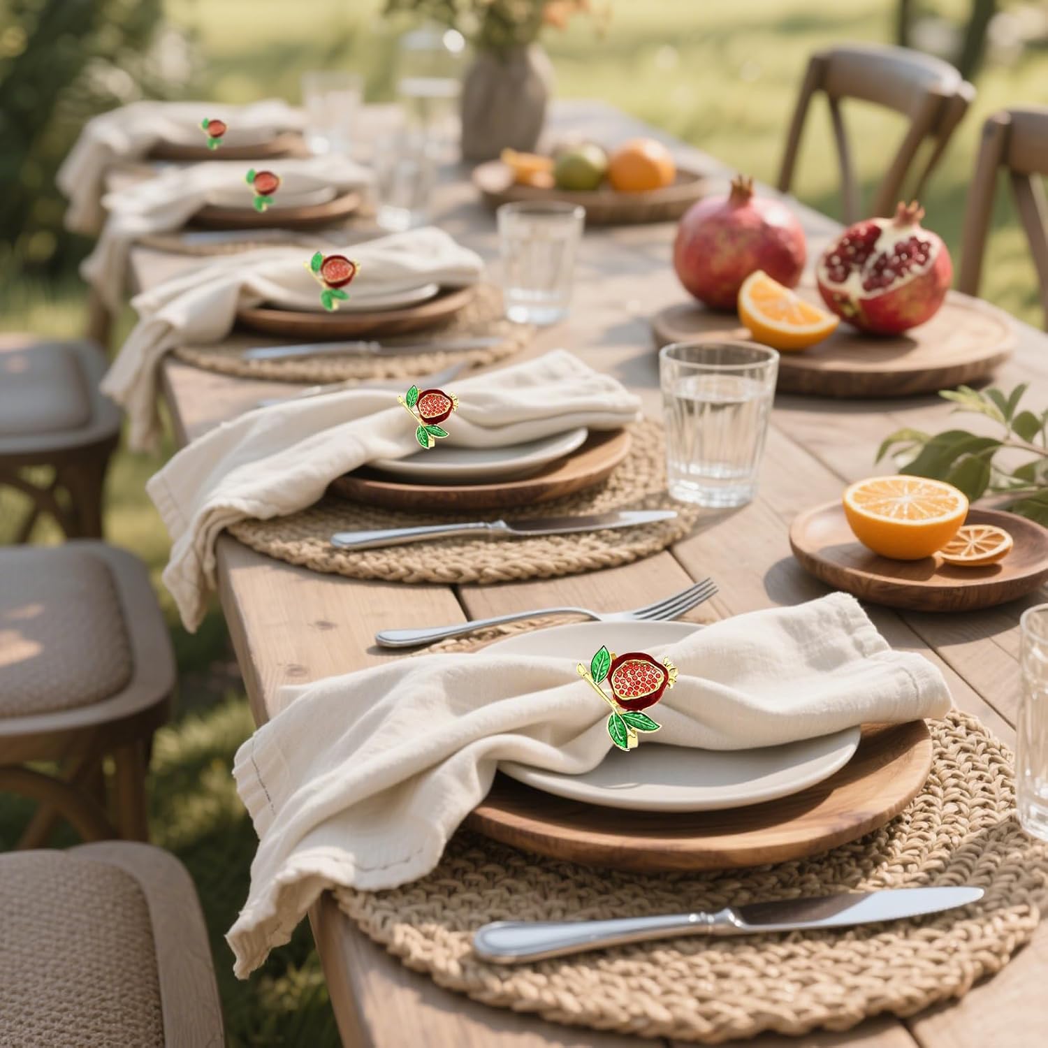 • Pomegranate Napkin Rings : Luxury & Brightly Each gold napkin rings features a exquisite pomegranate shape with red enamel and rhinestone,Red pomegranate napkin rings make a fresh with delicate look to showcase your tabletop for family and guests in hawaiian beach wedding or fall parties outdoor picnic etc..