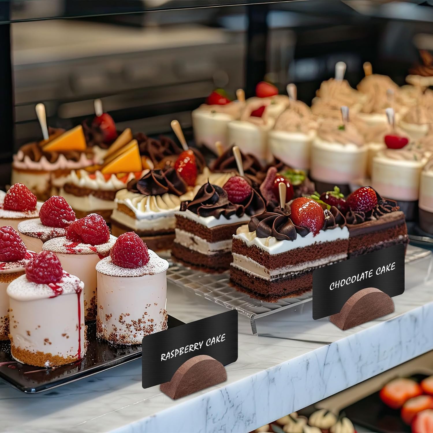 • Compact and Convenient: Table sign holders measure 1.6Ă—0.79Ă—0.59 inches, small and unobtrusive, taking up minimal space. Its design does not distract from the cards, and wood table number holders are easy to store and reuse
