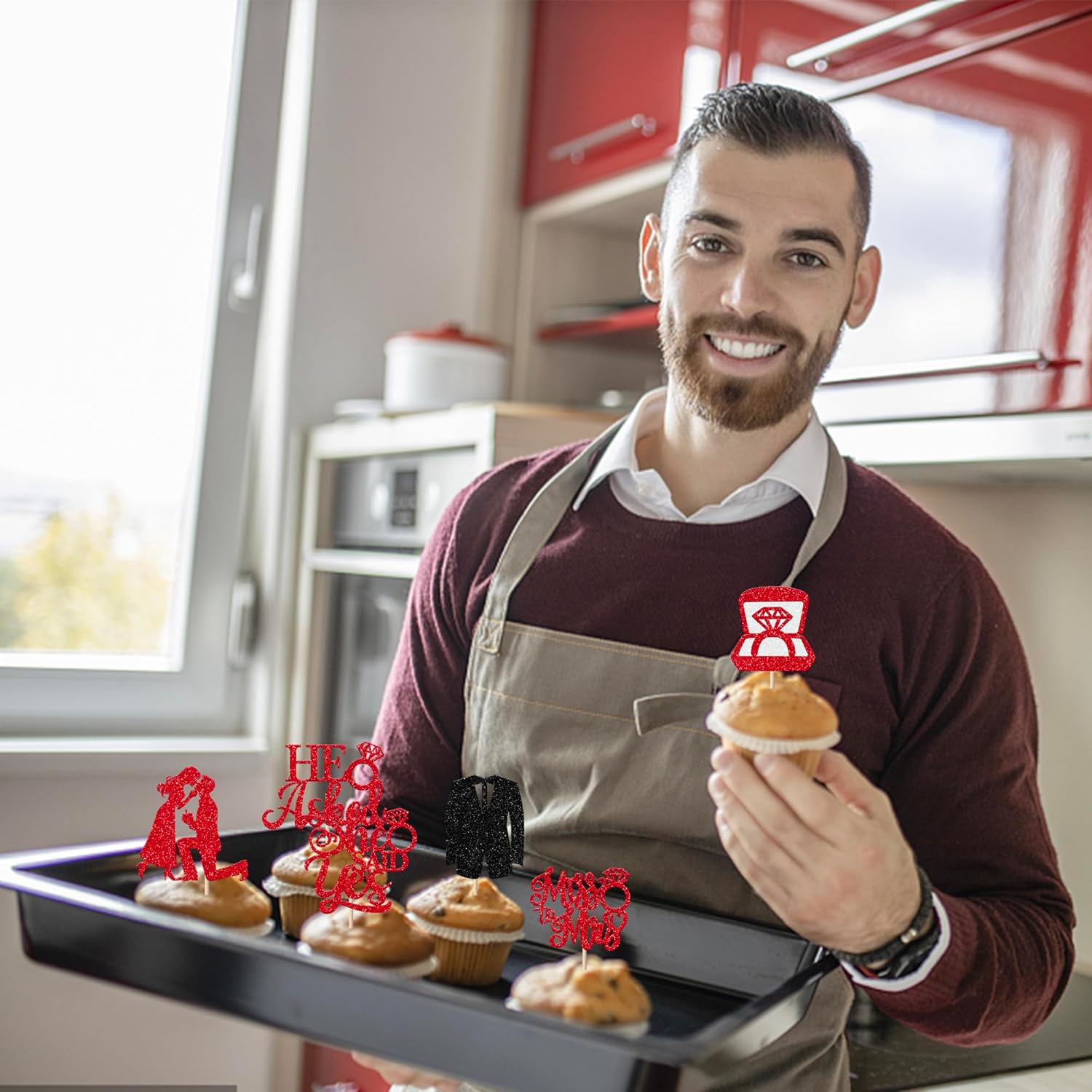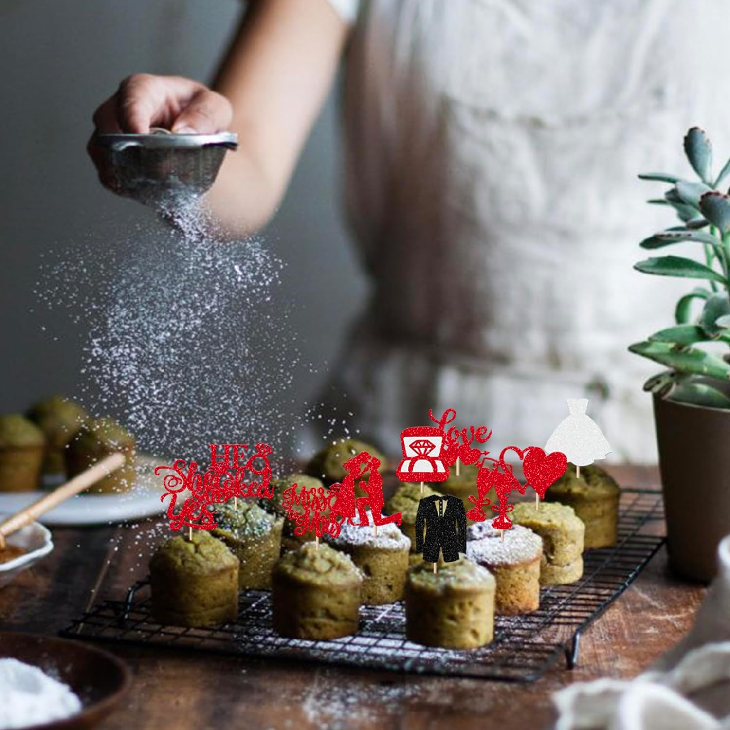 30 Pack Bride to be Cupcake Toppers Glitter Diamond Ring Love I Do Cupcake Picks Miss to Mrs He Asked She Said Yes Bridal Shower Wedding Engagement Bachelorette Cake Decorations Party Red