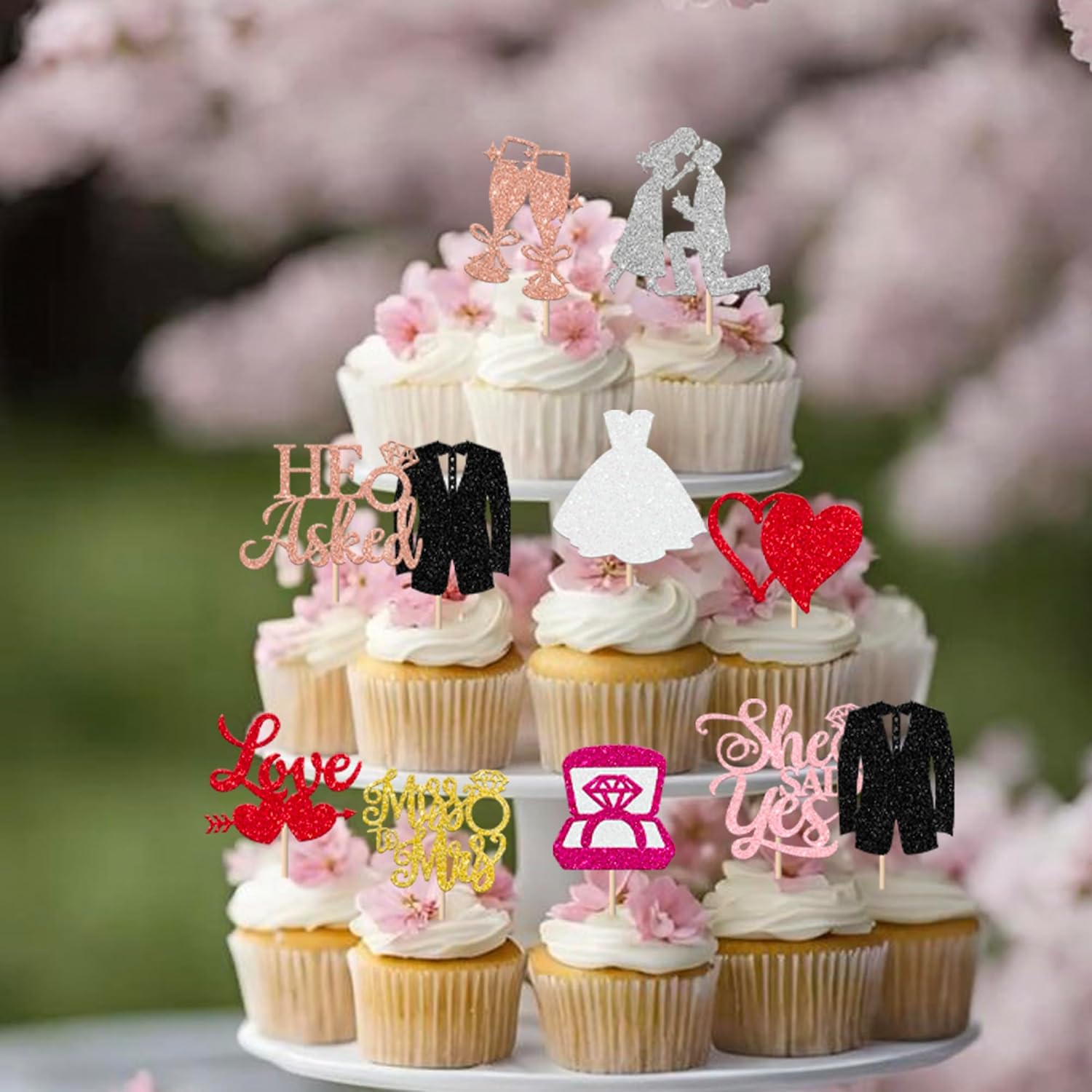 • APPLICATION:Perfect decoration for cupcakes,cookies, cakes, fruits, brownies, ice cream and more,particularly suit to use on bride to be theme party, bridal shower party, groom & bride theme party,wedding engagement party cupcake decorations supplies