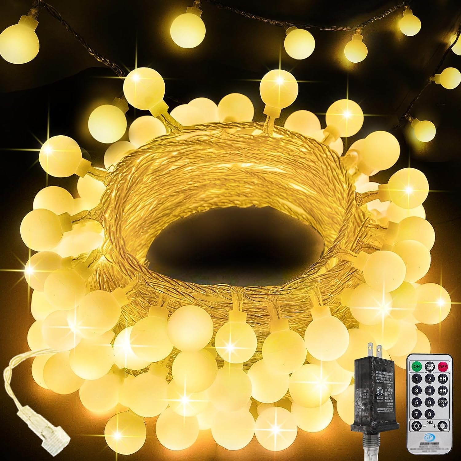 • Remote Control & Timer & Memory: These indoor string lights come with a wireless remote, You can easily turn the lights on and off, select from 8 light modes, adjust 4 brightness levels, and set a timer to keep the lights on for 6 hours and off for 18 hours. The globe lights for bedroom will memorize your last setting with the built-in memory chip.
