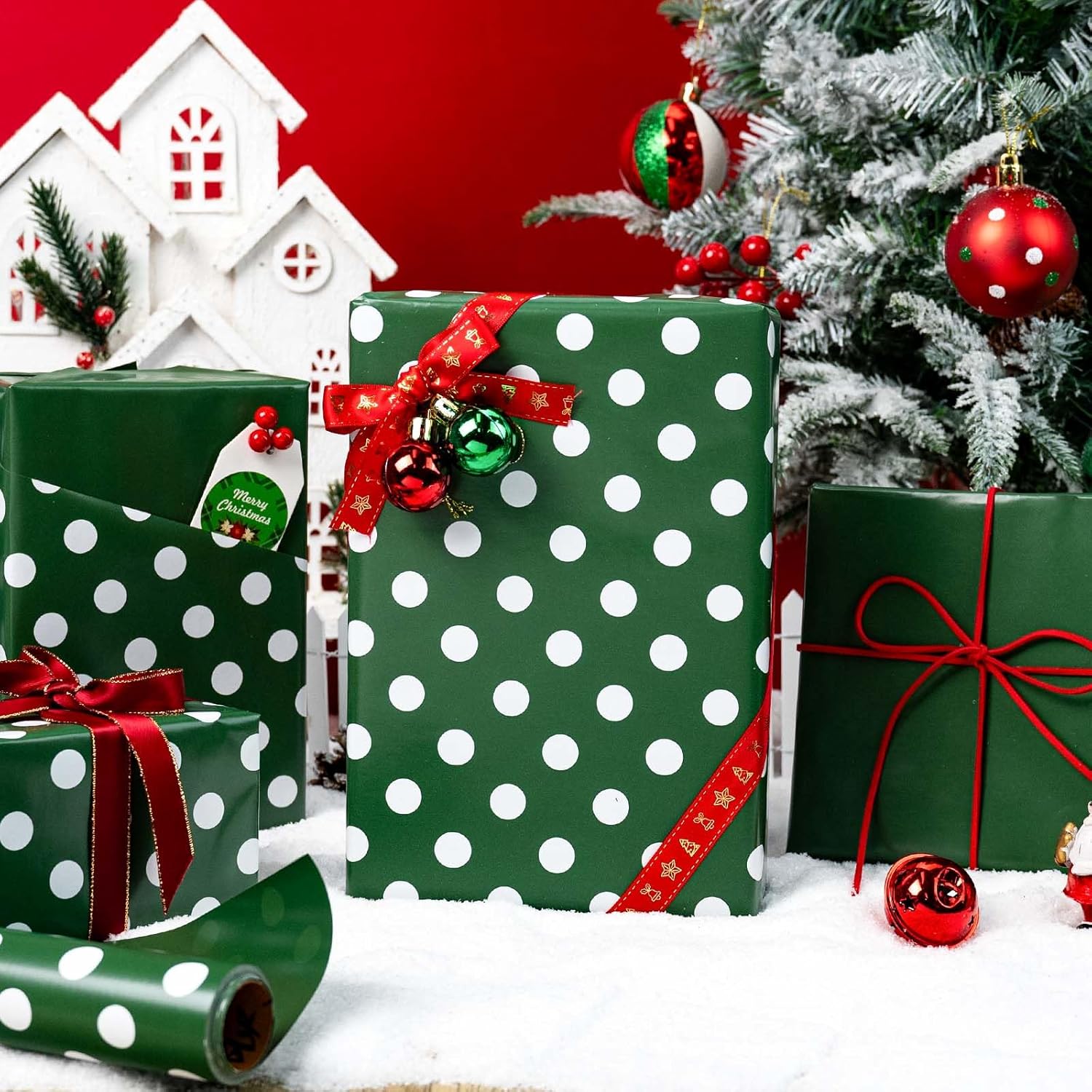 • Double-Sided Wrapping Paper: One side has green and white polka dots, and the other is solid pink, making your gift wrap both fun and elegant