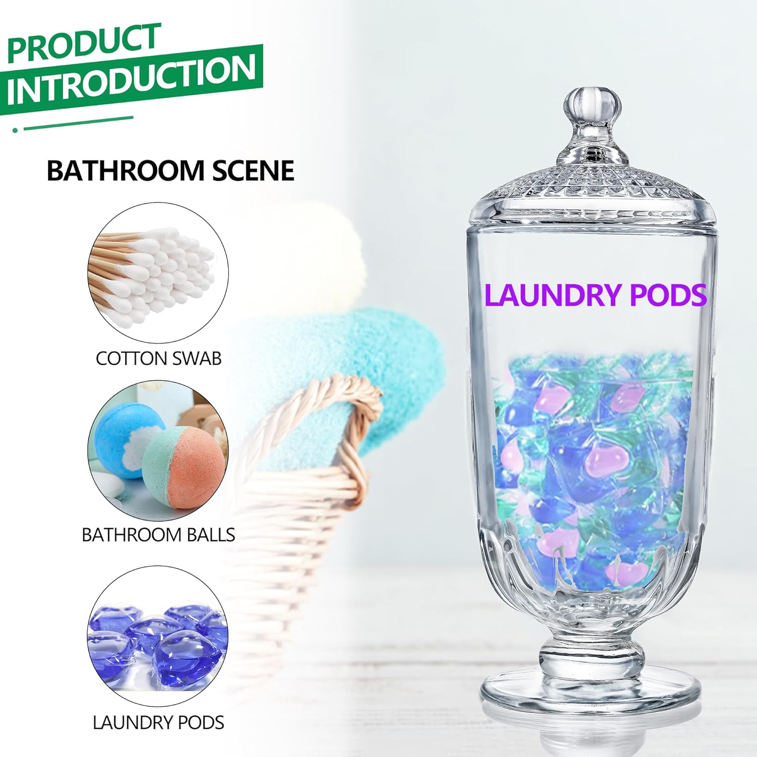 • Versatile and Stylish: These clear Storage jars are both functional and decorative, ideal for organizing restroom supplies, bathroom accessories, dresser items, or office essentials. Perfect for any spaceβ€”bathrooms, bedrooms, kitchens, or offices.