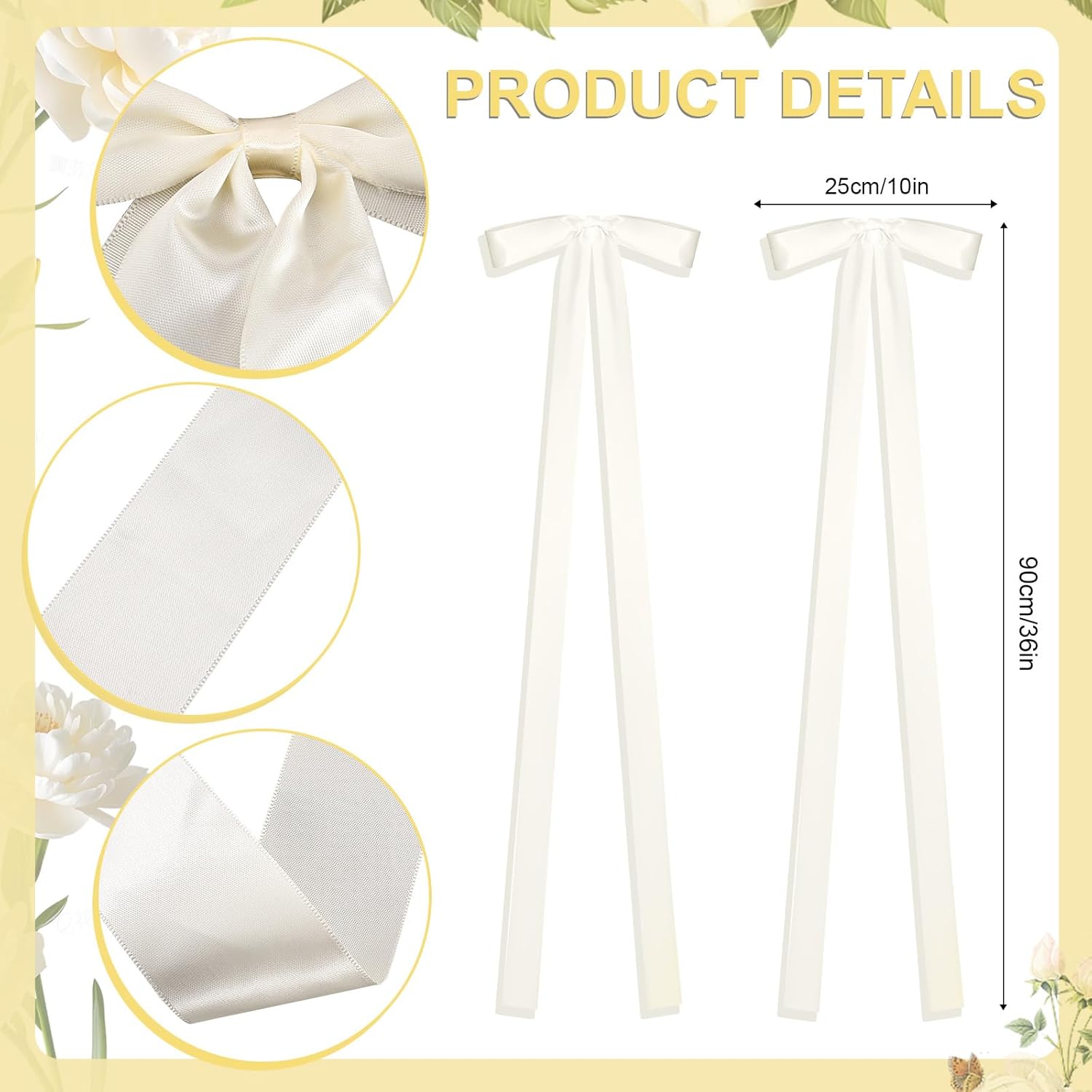 24 Pcs Large Wedding Ivory Ribbon Bows for Wedding Chairs Decorative Ribbon Sashes for Pew Back Elegant Ceremony Ribbons for Bridal Shower Banquet Marriage Ceremony