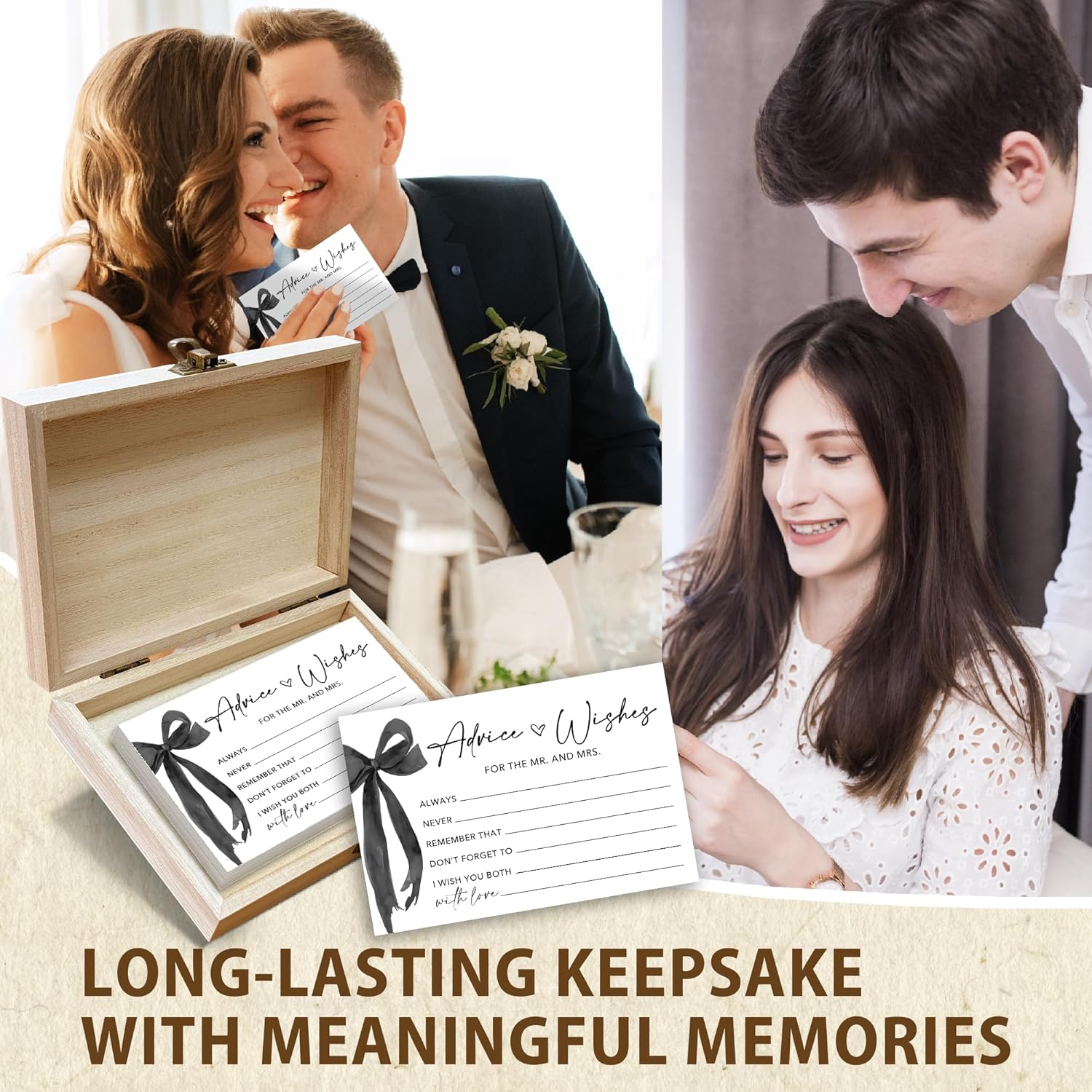 50 Pcs Advice and Wishes for the Mr and Mrs Cards in Box - Bridal Shower Guest Book - Perfect for Newlywed Games, Reception Decor, Engagement Parties & Anniversary Wishes(Black Bow) - B07