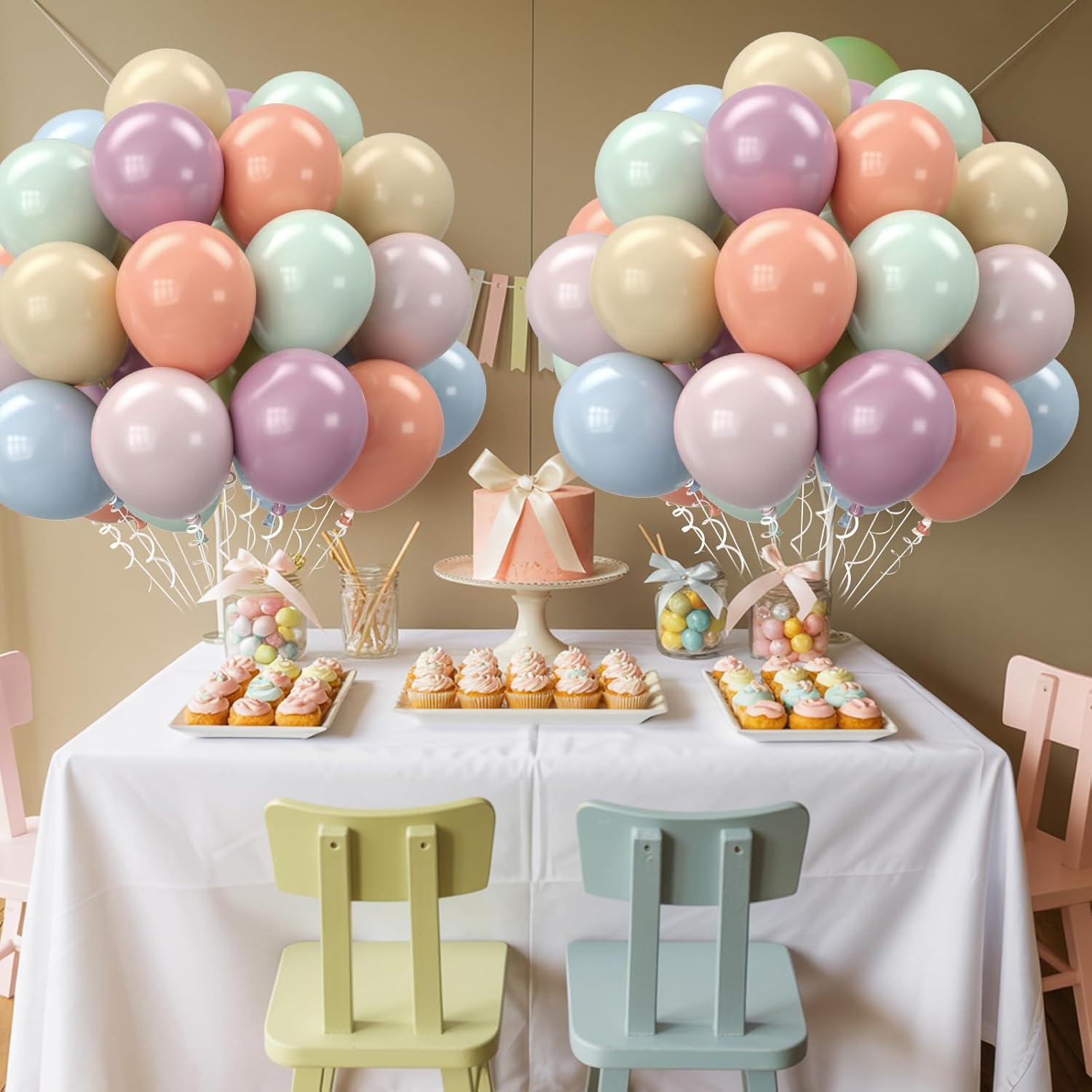 Pastel Retro Balloons, 12 Inch 6 Color Blue Purple Green Pink Beige Latex Party Balloon for Birthday Graduation Anniversary Baby Shower Wedding Decorations