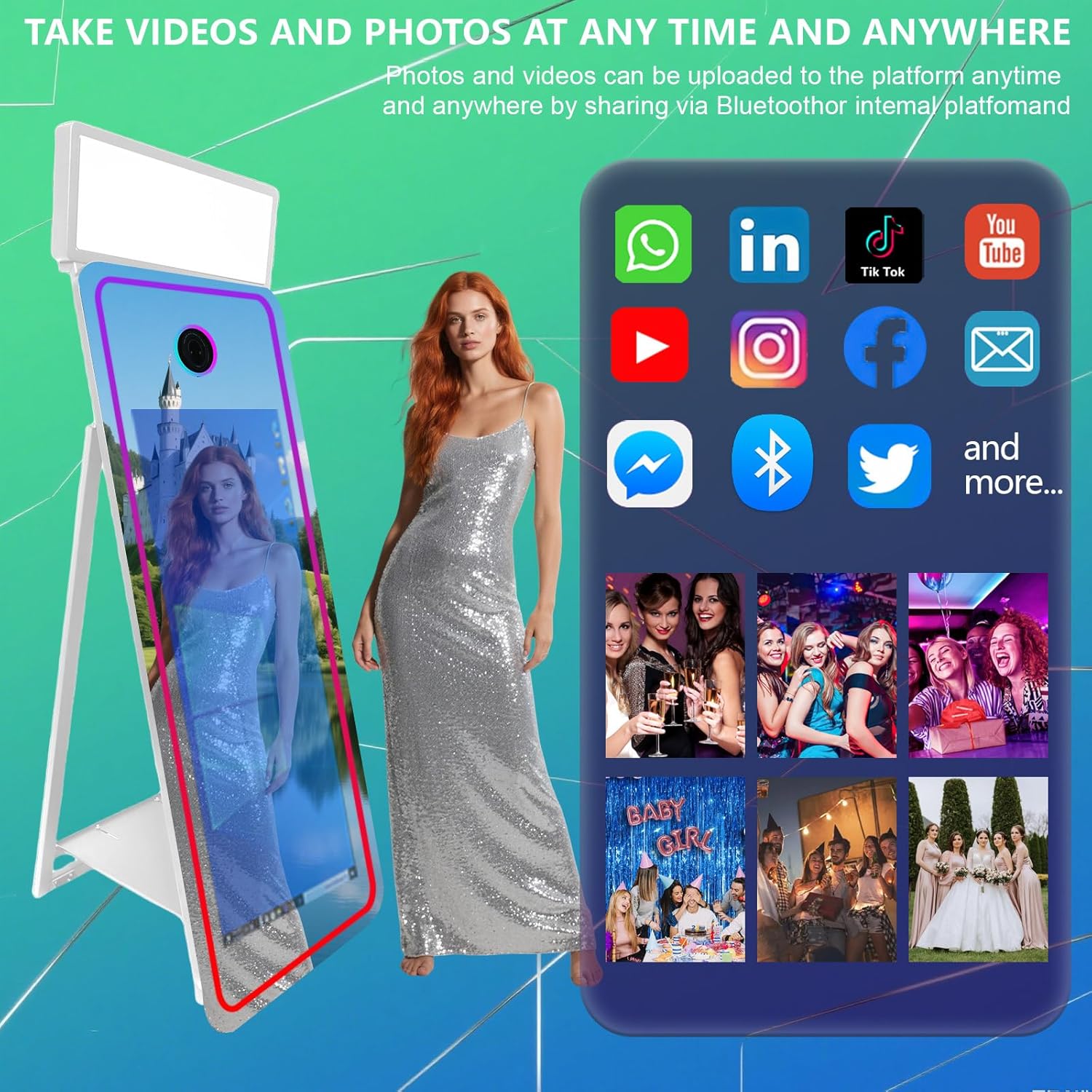 • PORTABLE MAGIC MIRROR PHOTO BOOTH: This DSLR photo booth stands out with its portable and lightweight features,reducing overall weight, Digital photo booth machine is made of solid metal material,which is not easy to rust and deform. The whole is designed with a detachable structure and equipped with a high-quality flight case with wheels can be carried around easily