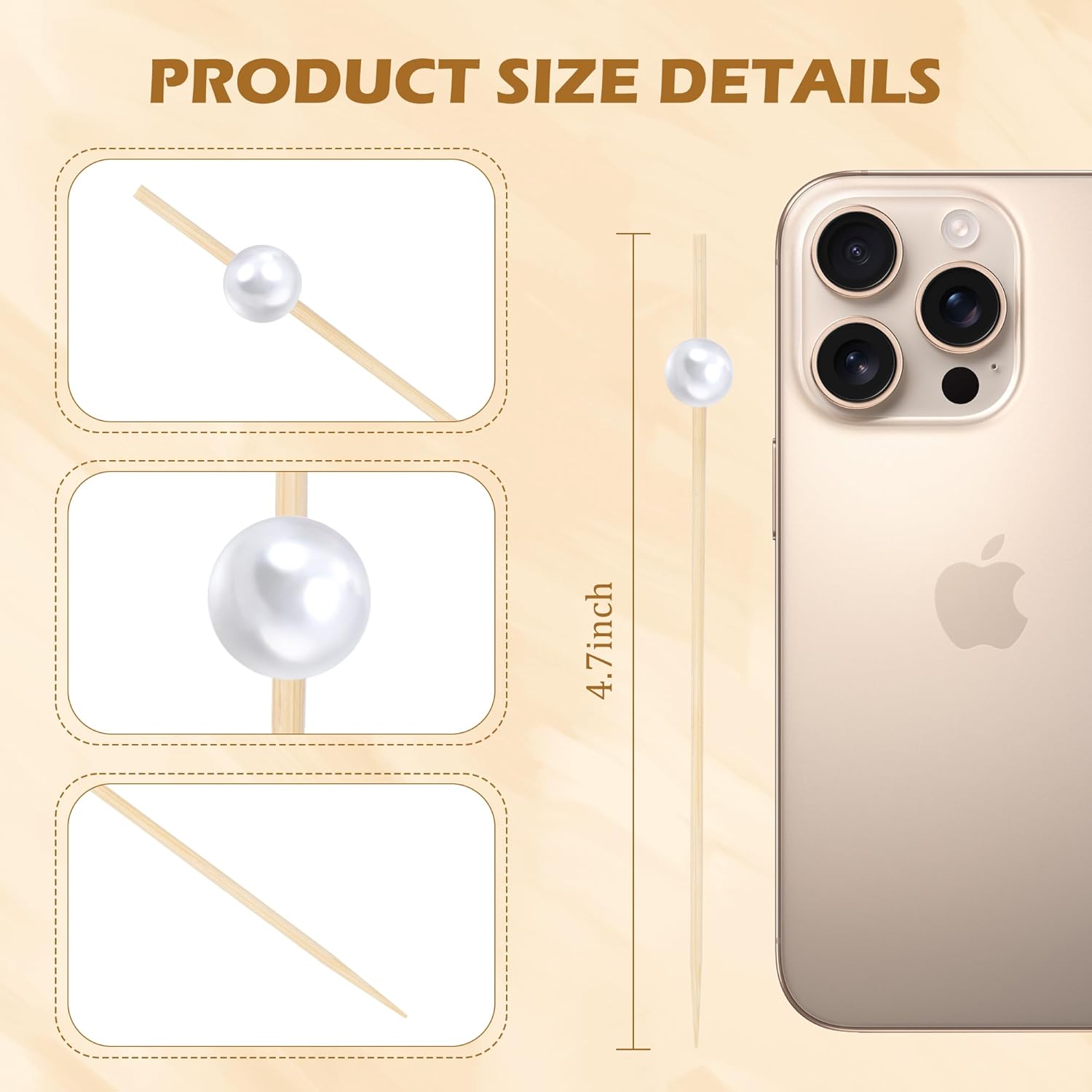 • Special Decorative: The cocktail toothpicks has white pearl decoration on the top,not like simple and lackluster cocktail toothpicks.Such special amazing cocktail skewers make your appetizer, dessert and drinks presentation stand out, make you and your friends enjoy party.