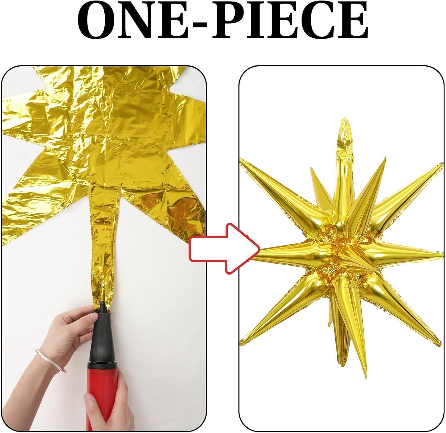 • One-piece Star Balloons: Includes 12pcs One-piece star burst balloons in bold colors: 3pcs Γ— 27in , 3pcs Γ— 22in explosion star balloons and 6pcs Γ— 10in four angle star balloons. Arrives ready to use with 1 straw and 1 roll of ribbonβ€”just inflate and decorate.