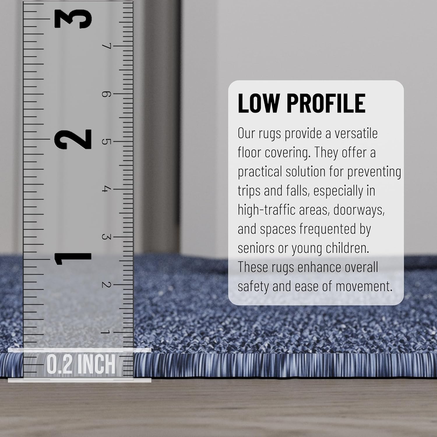• [ULTRA THIN]: An ultra thin pile thickness of 0.2 inches offers ideal functionality that is perfect for busy areas, underneath furniture, and in entryways as it will not obstruct doorways.