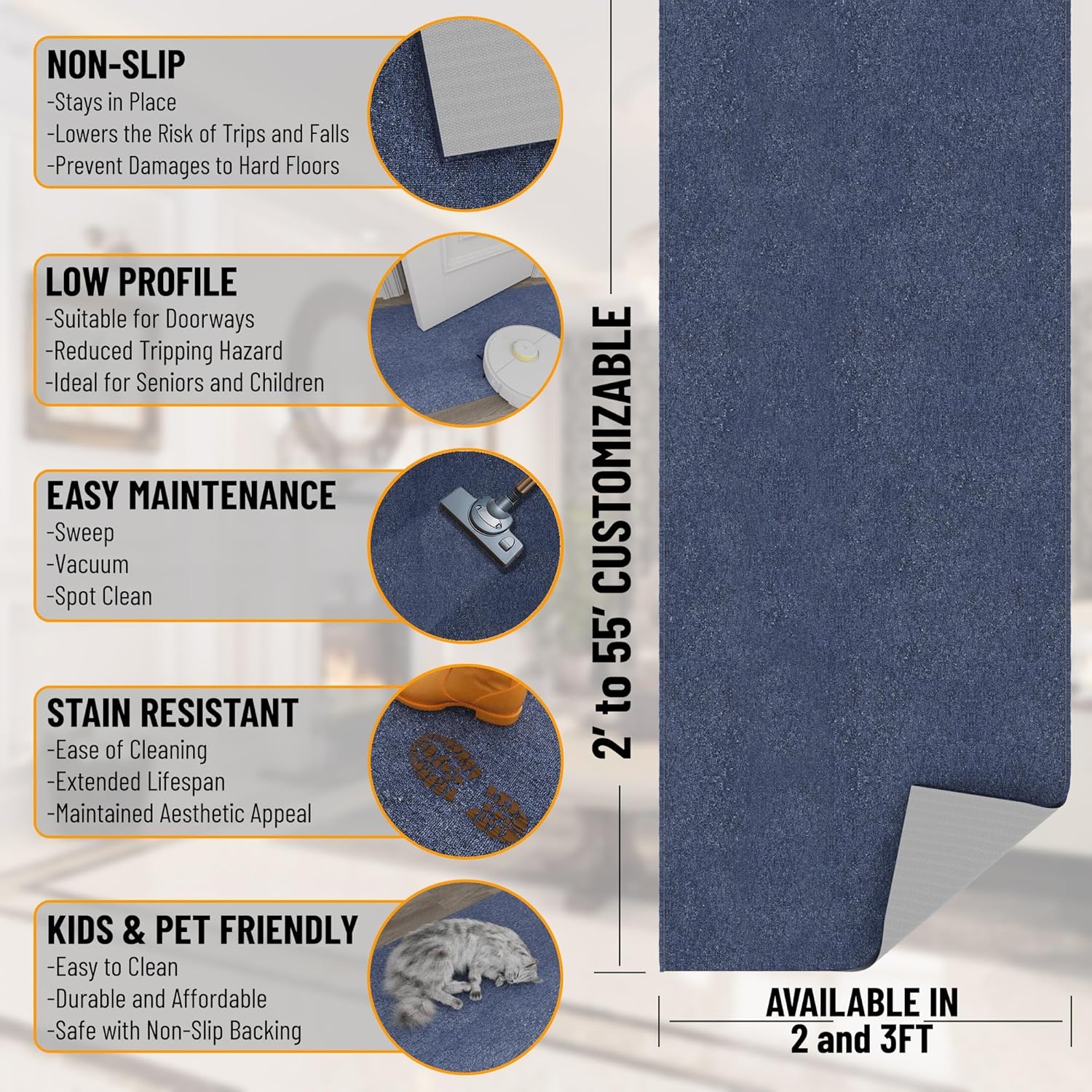 • [KEY ATTRIBUTES]: Size: 2' x 14' | Thickness: 0.2 in. | Color: Navy
