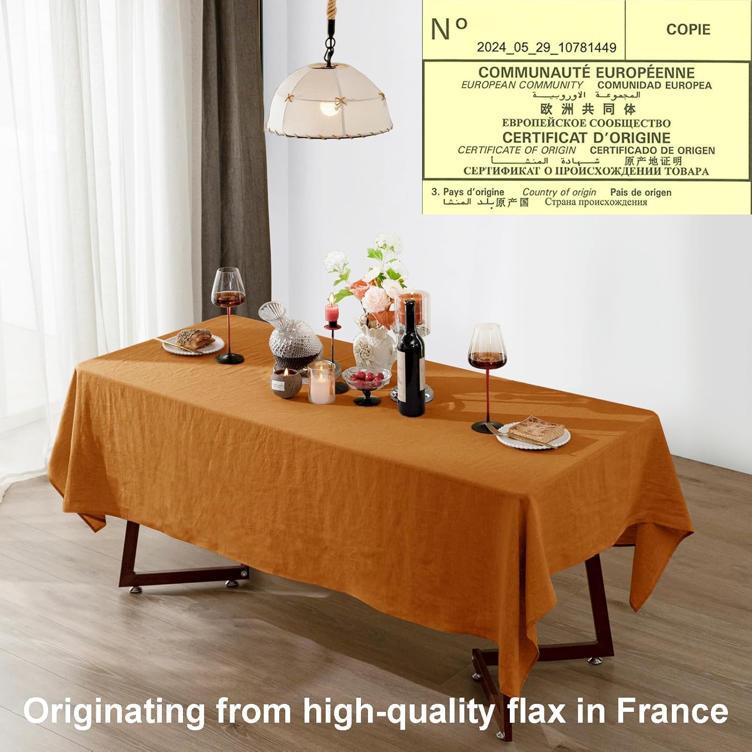 Talasily Linen Tablecloth 100% Pure Linen Table Cloth 60x120 Inches Rectangle Tablecloths Washable Cloths for Kitchen, Dining, Buffet Parties, Holidays, Picnic, Weddings and Restaurants-Caramel