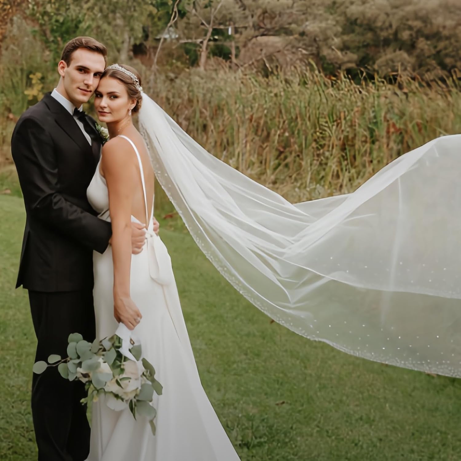 • Design: The embellishment of pearls makes the veil look more exquisite and layered as a whole, and also adds a touch of mystery and romance to the bride.