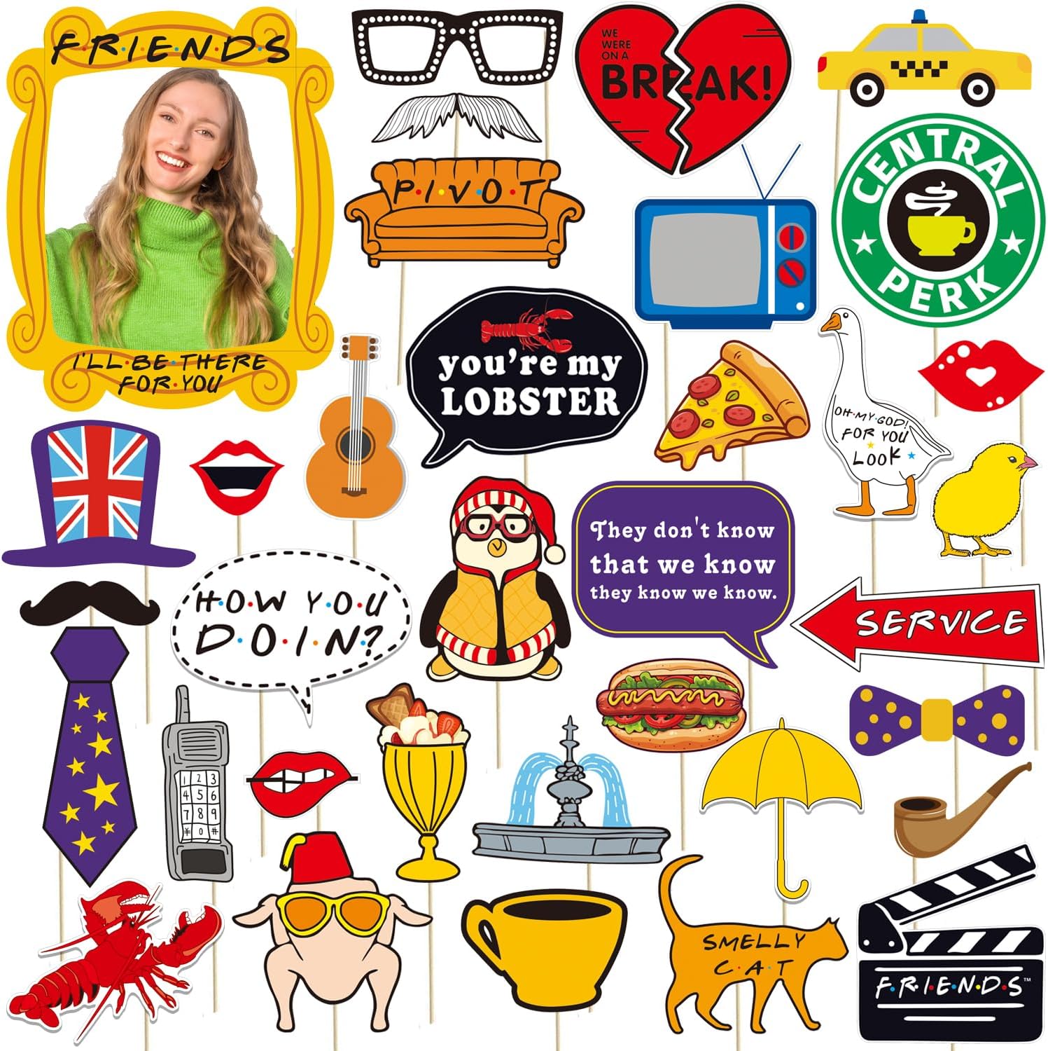 35pcs Friends Themed Party Photo Booth Props, Friends Selfie Frame with Friends TV Show Party Photo Props, Friends Themed Birthday Bachelorette Party Decorations Friends Party Supplies