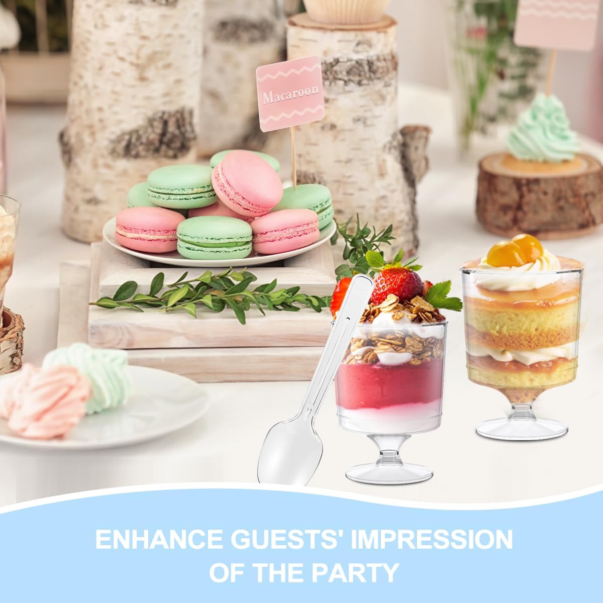 • Sufficient Quantity:The package include 100pcs goblet dessert cups and 100pcs spoons,i think it’s enough for your daily use and replacement,even you can share with your friends