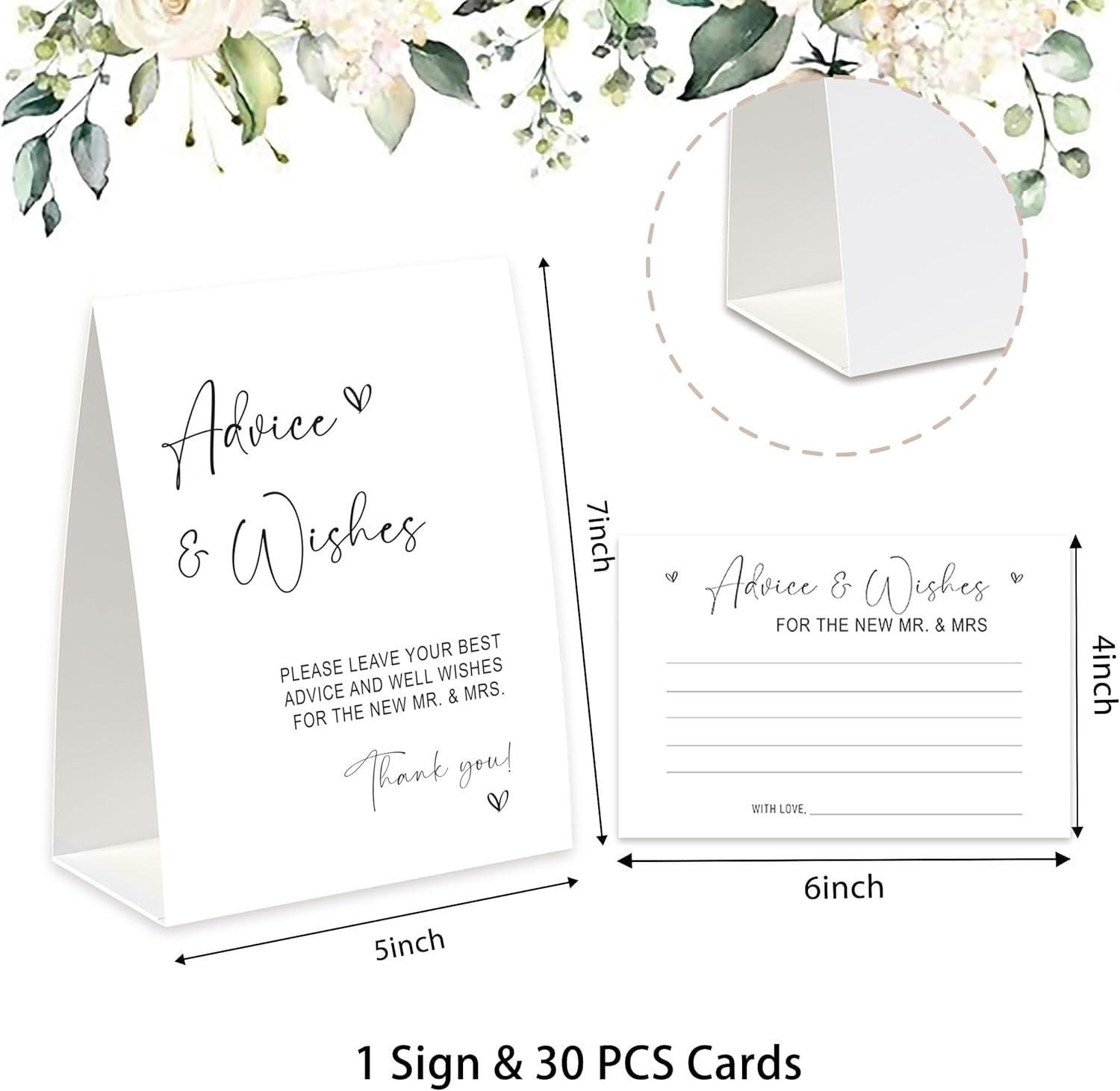 Advice and Wishes for The Mr and Mrs, Advice Cards for Bride and Groom 30 Pcs, Minimalist Theme, Bridal Shower Wedding Games and Decorations Supplies-ANWFM01