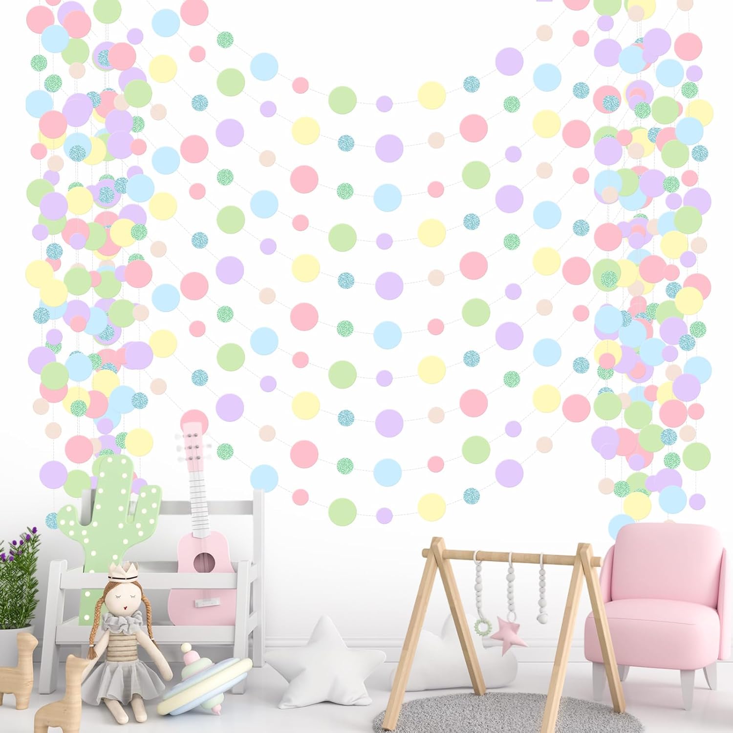 Outus 10 Pieces Colorful Dots Paper Garland Round Glitter Garland Hanging Confetti Streamers Backdrop for Candy Birthday Classroom Halloween Trunk or Treat Car Decoration (Pastel)