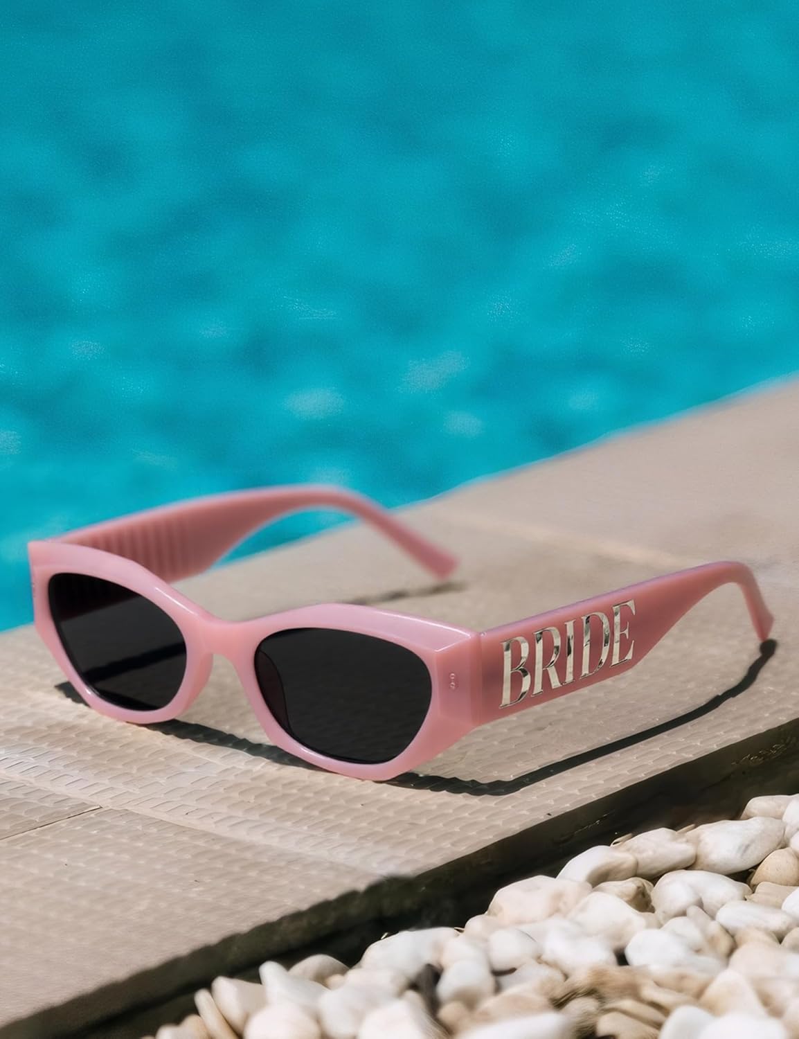 • 【ENHANCE YOUR BRIDAL LOOK】Pink bride sunglasses features a chic pink marble frame and bold "BRIDE" logos on both temples. Bride sunglasses for bachelorette party ensures you shine with stunning, photo-ready style from every angle