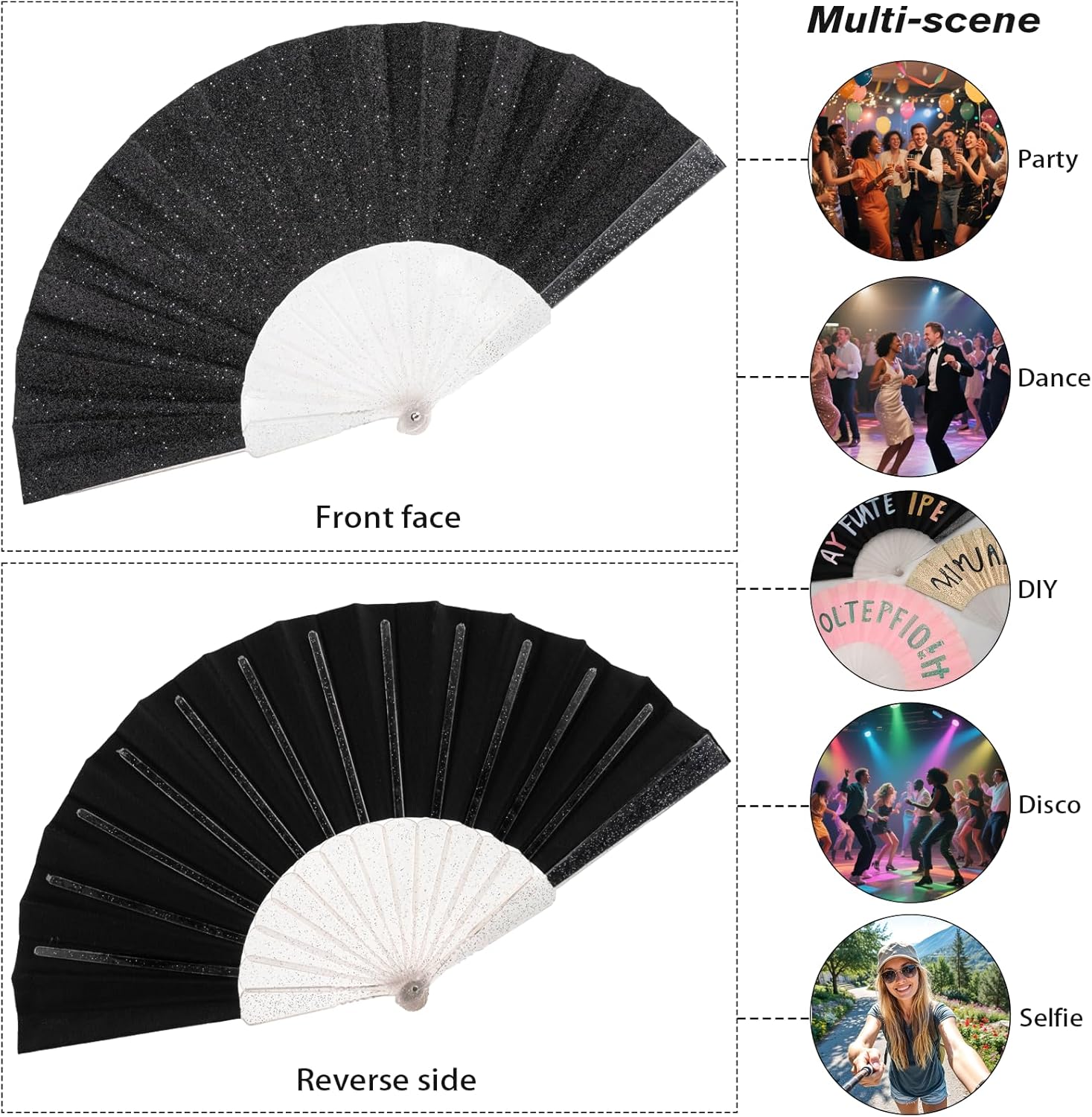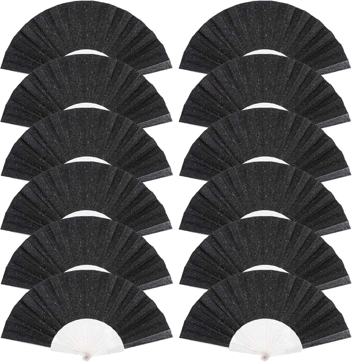 12 Pack Handheld Fan,Folding Hand Glitter fan with Shining Transparent Fan Rib – Ideal for Wedding, Church, Festival, Dance, Tea Party, Club, and EDM Accessories, Black