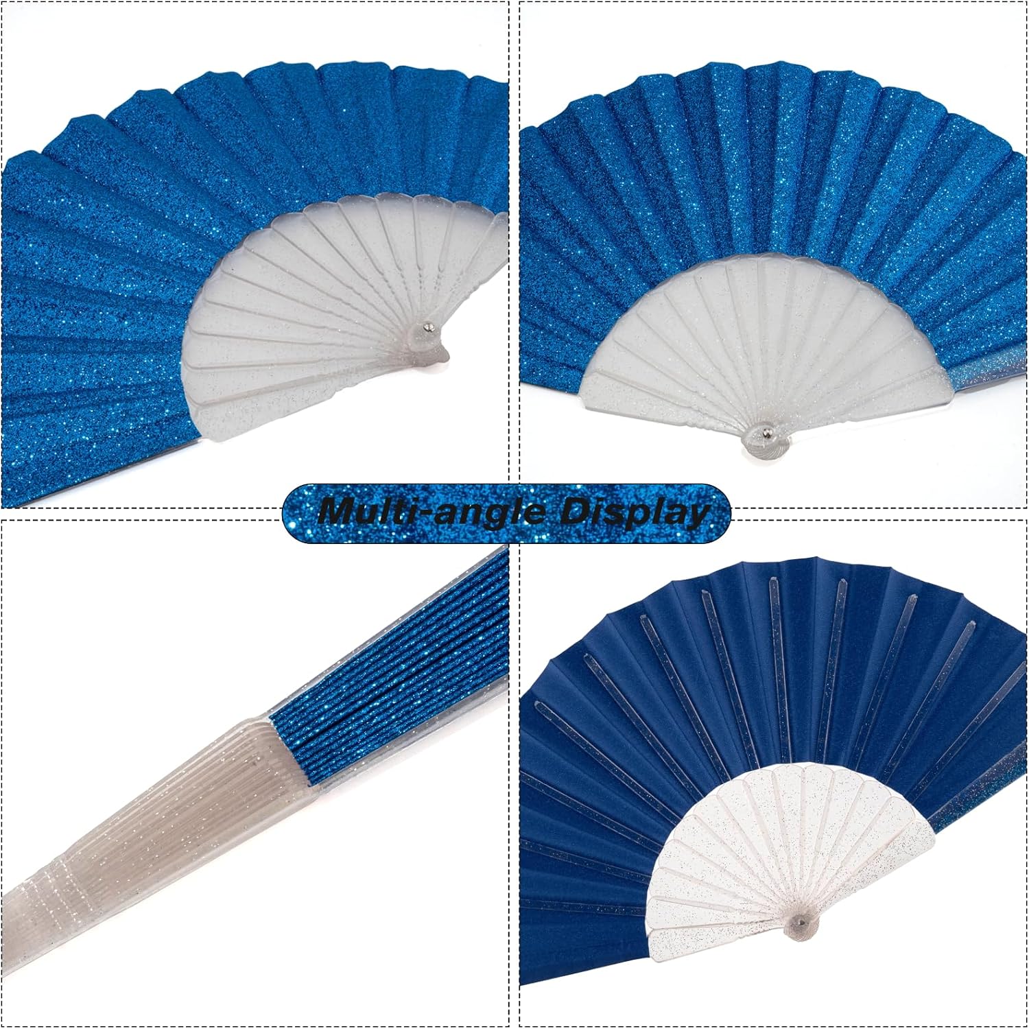 12 Pack Handheld Fan,Folding Hand Glitter fan with Shining Transparent Fan Rib – Ideal for Wedding, Church, Festival, Dance, Tea Party, Club, and EDM Accessories, Royal blue