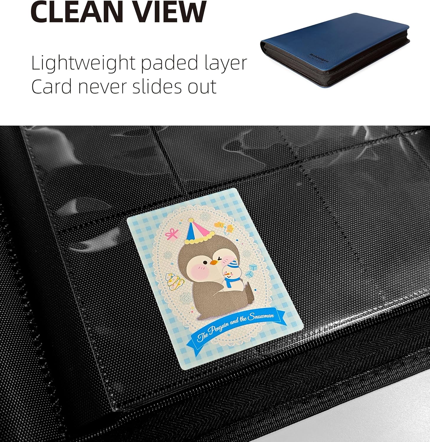 • ✨✨Premium quality trading card binder,made of durable PU leather outer shell and inner pocktes use suppler clear PVC,it will protects your cards out from damage,dust,and moisture.