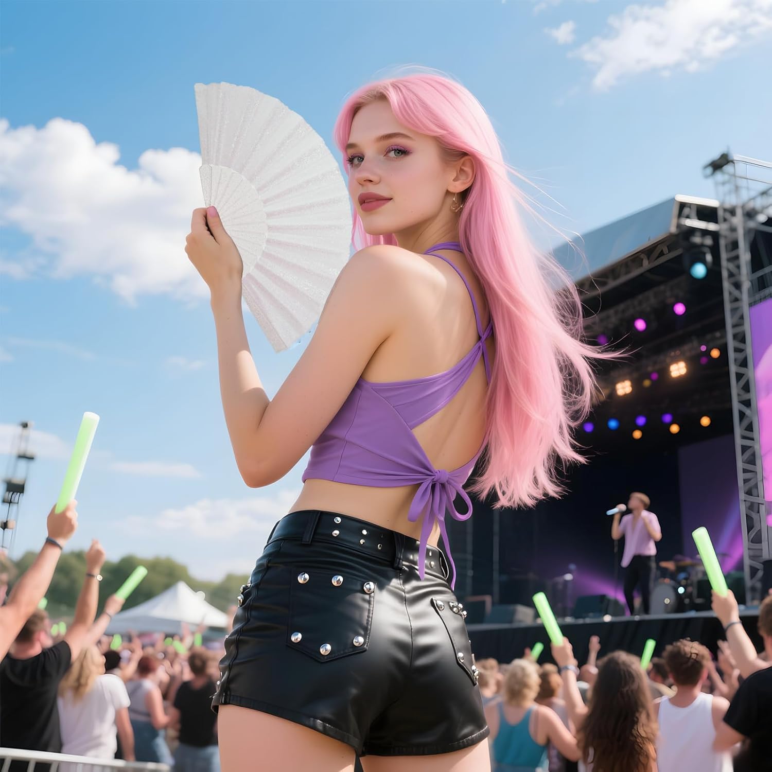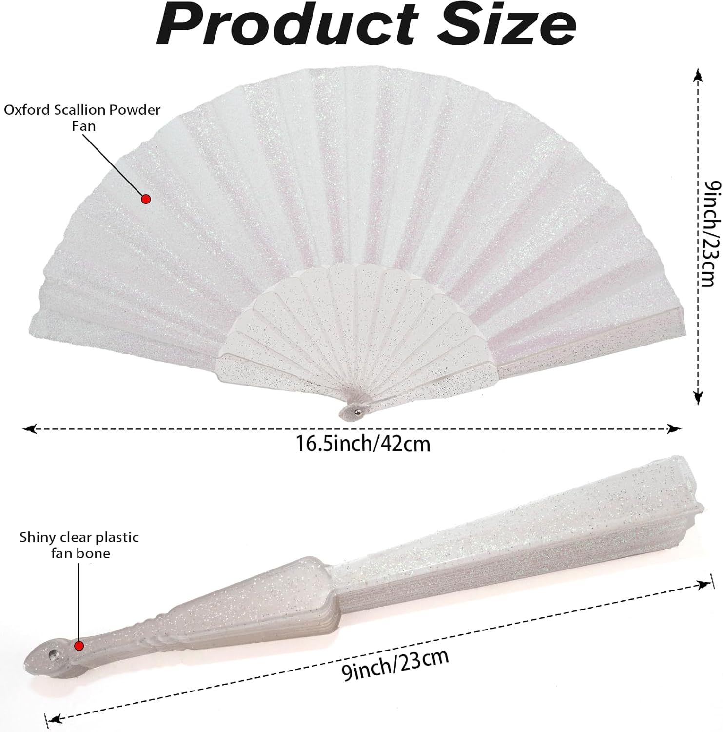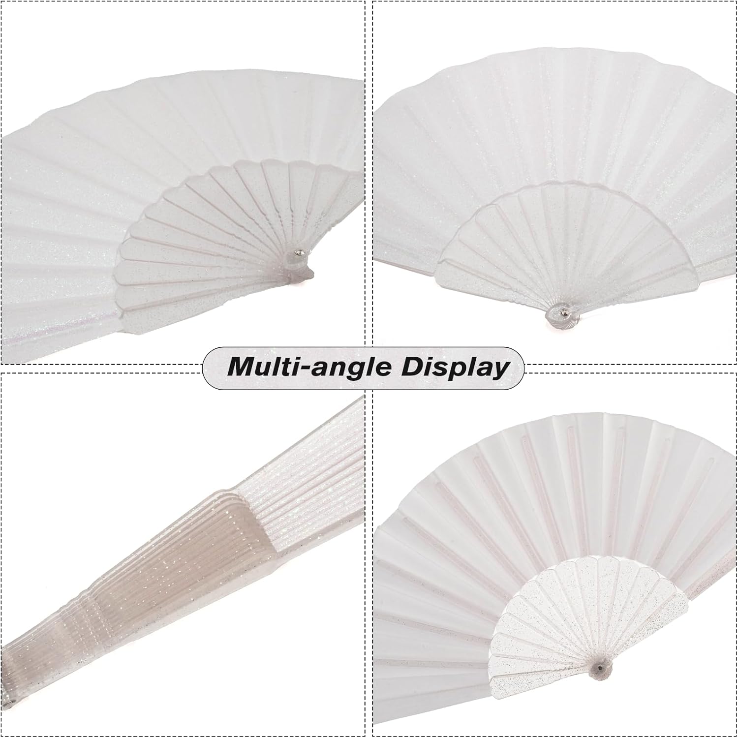 • Sparkling Design & Durable Construction: Featuring premium glitter flashpoints fabric and polyester fan ribs, this fan boasts a holographic white appearance, making it an elegant accessory suited for weddings, themed gatherings, festivals, and more.