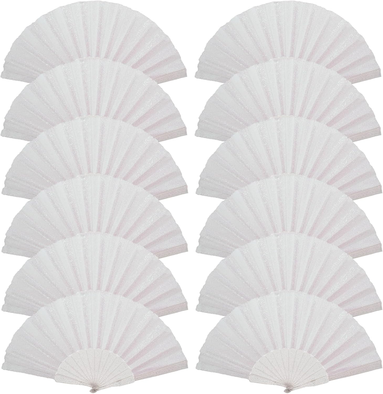 12 Pack Handheld Fan,Folding Hand Glitter Fan with Shining Transparent Fan Rib – Ideal for Wedding, Church, Festival, Dance, Tea Party, Club, and EDM Accessories, White