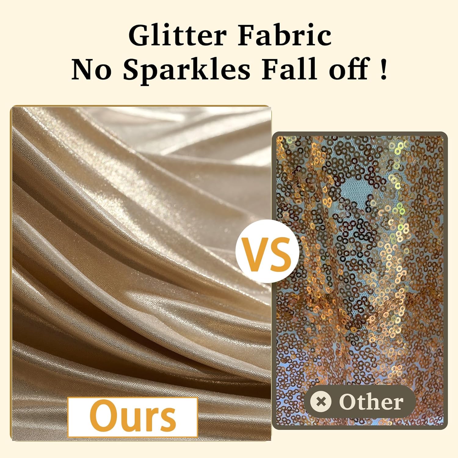 • Glitter Cloth: Made of soft and smooth polyester fabric. Backdrop drapes with bronzing technology is shiny and sparkly. No Sequin Fall OF.