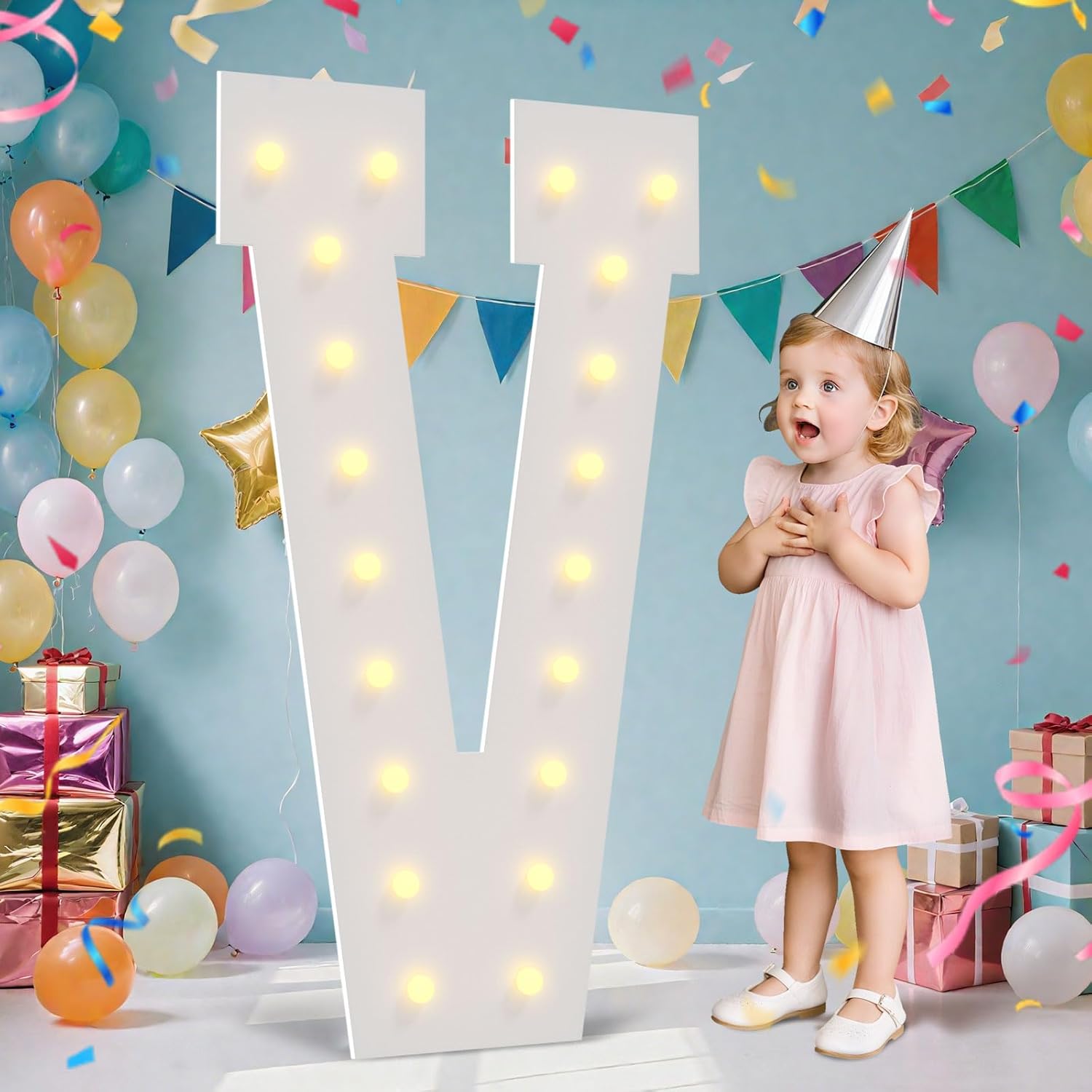 4FT Marquee Light Up Letters - Large Marquee Letters 4 Feet Tall for Birthday Party Decorations, Big Letter for Wedding Event Marry Me Baby Shower Bridal Shower, Letter V