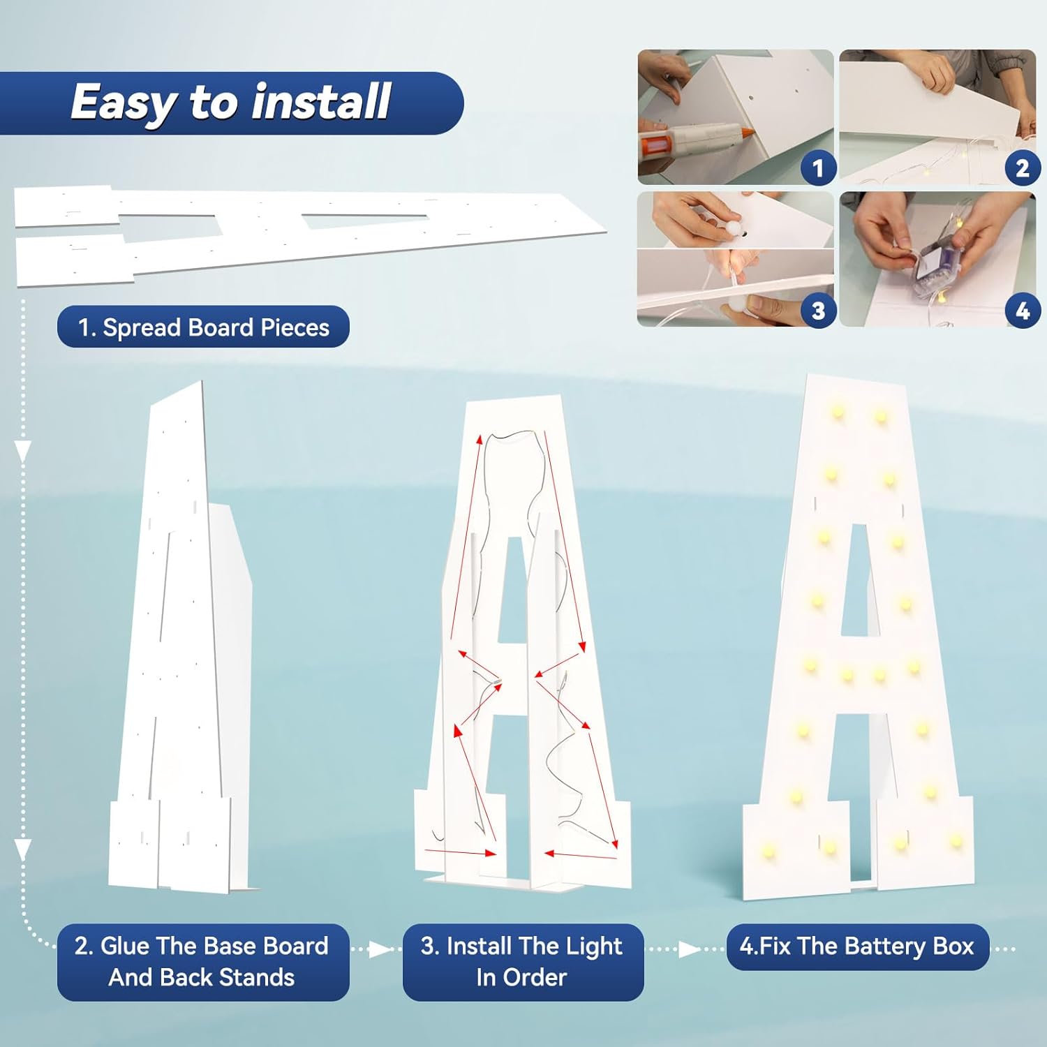 • 【4FT Marquee Light Up Letters】: 4 FT White pre-cut foam mosaic letter frame with warm white LED lights is an eye catching centerpiece for birthday party, wedding, baby shower and Christmas. Light up your party and make your indoor celebration more special