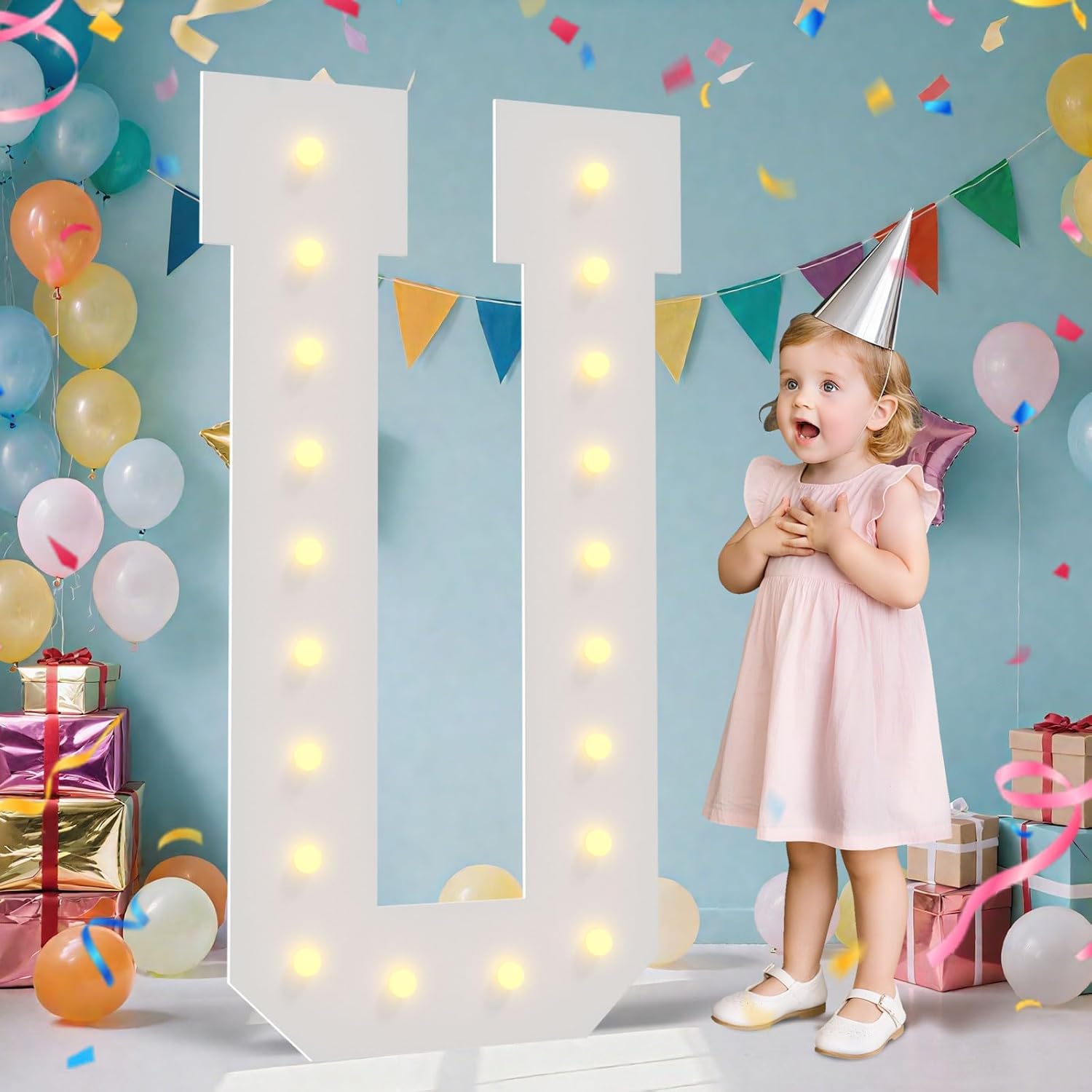 4FT Marquee Light Up Letters - Large Marquee Letters 4 Feet Tall for Birthday Party Decorations, Big Letter for Wedding Event Marry Me Baby Shower Bridal Shower, Letter U