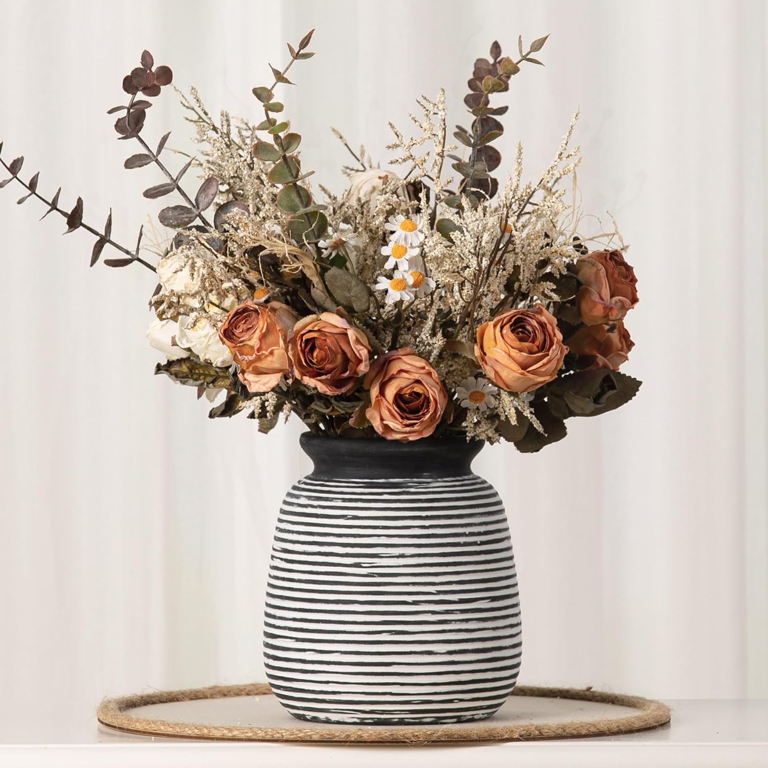 • Ceramic Vase Home Decor --- More than a vase for flower, this ceramic vase can as utensil holder or wonderful home décor, as its 100% hand-painted surface makes each vase unique.This vase is perfect forarranging artificial plants, pampas grass or fresh flowers and plants, can be arranged individually or in combination, as a room decor, home decor, living room decor, farmhouse decor, table decor, bookshelf decor,entryway decor, kitchen decor, boho decor, house decor, office decor,shelf decor and more.