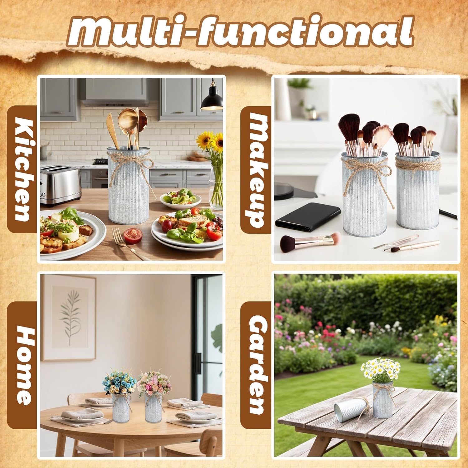 • Elegant & Vintage Style: Crafted from galvanized iron with rustic twine bow accents, this farmhouse vase exudes timeless charm. The flower vase is perfect for enhancing rustic wedding decor and adding farmhouse character to any space