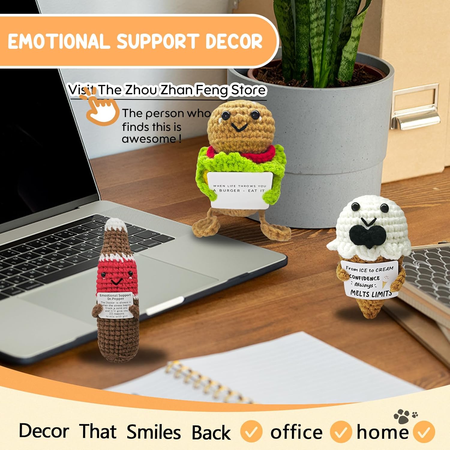 • 【Cheerful Crochet Friend】This handcrafted doll radiates positivity,offering comfort and joy in everyday life.Its uplifting presence reminds you to focus on the bright side,helping you stay hopeful and resilient during tough times.A little companion that strengthens the heart with warmth and optimism