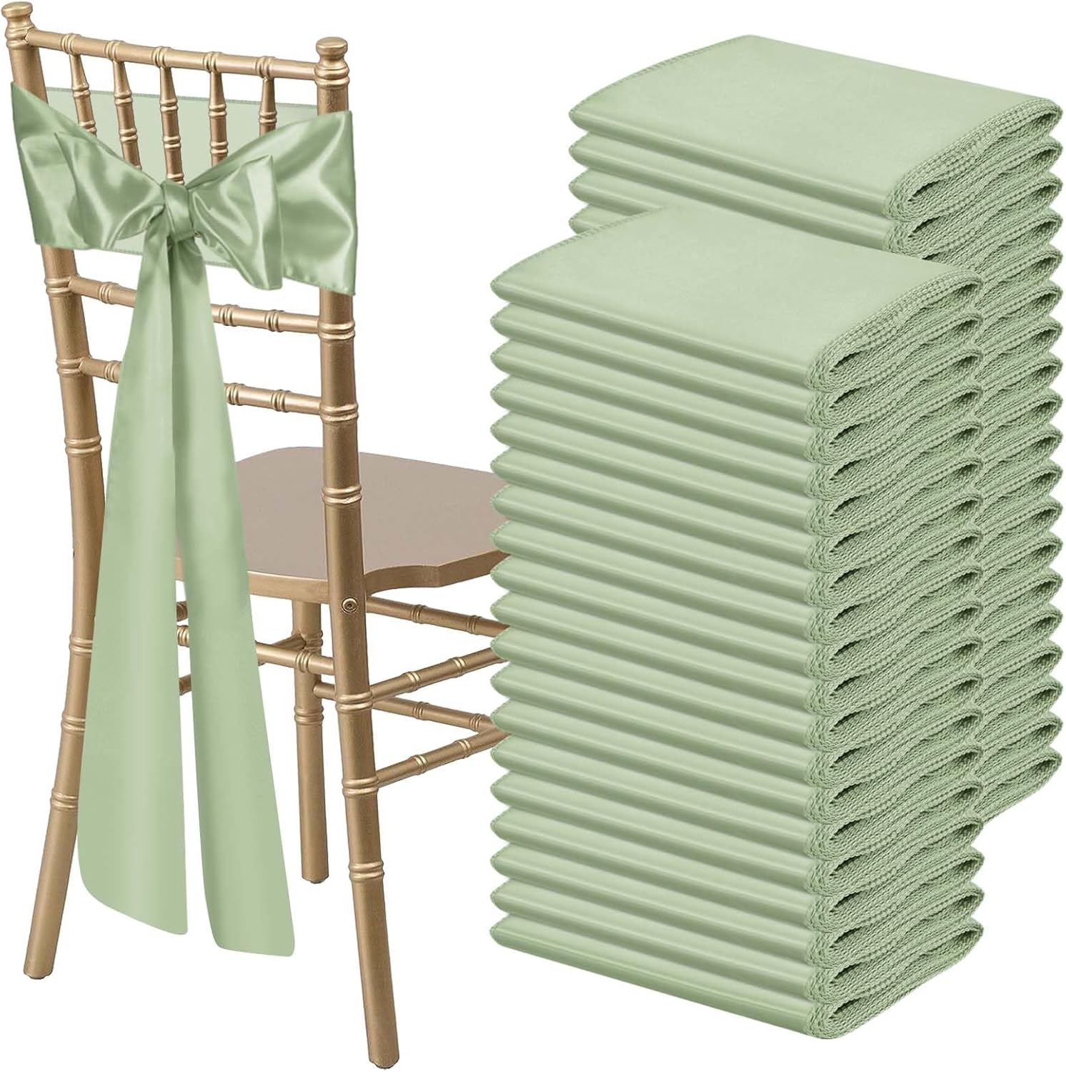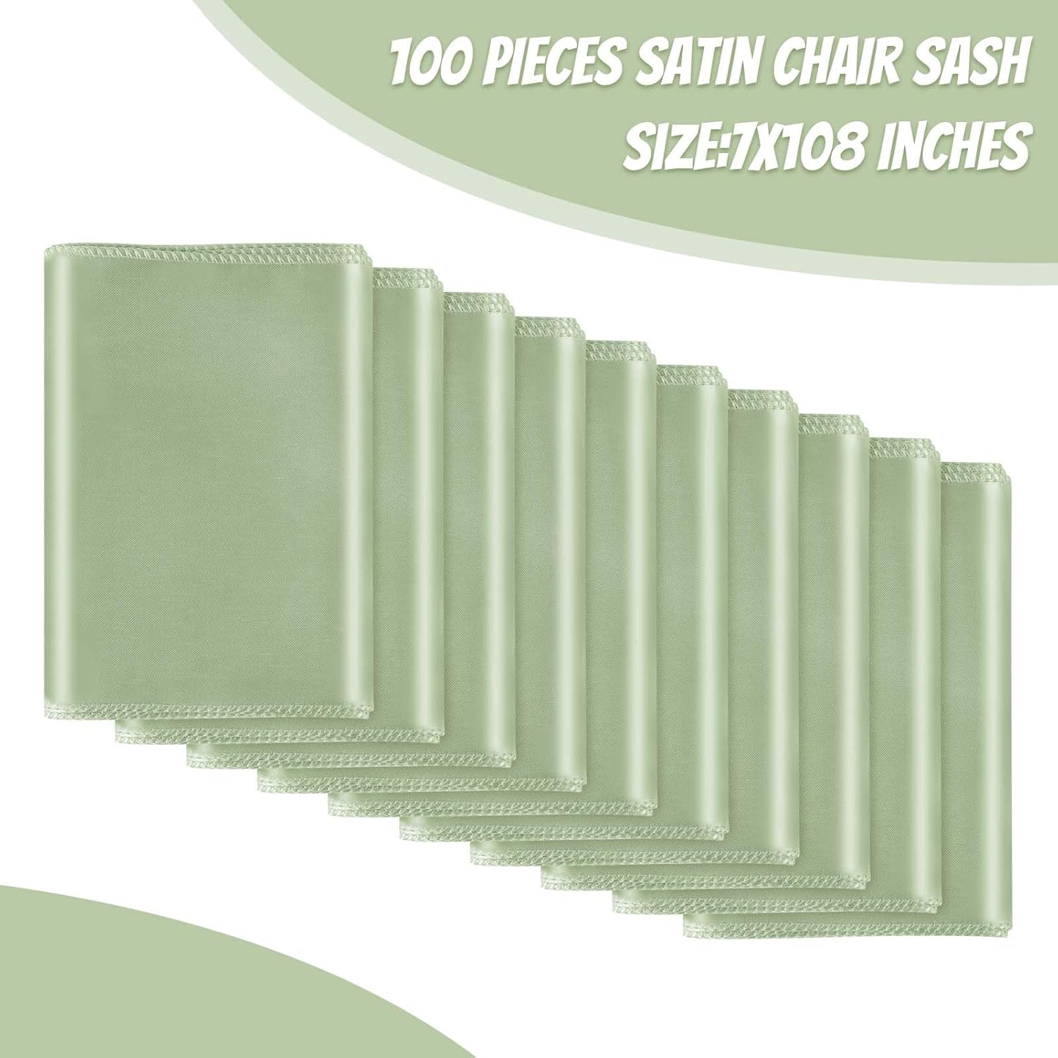 Satin Chair Sashes Bows Universal Chair Ribbon Ties Back Sash for Wedding Party Reception Events Banquets Hotel Event Chair Cover Decoration (7x108 inch) (100, Sage Green)