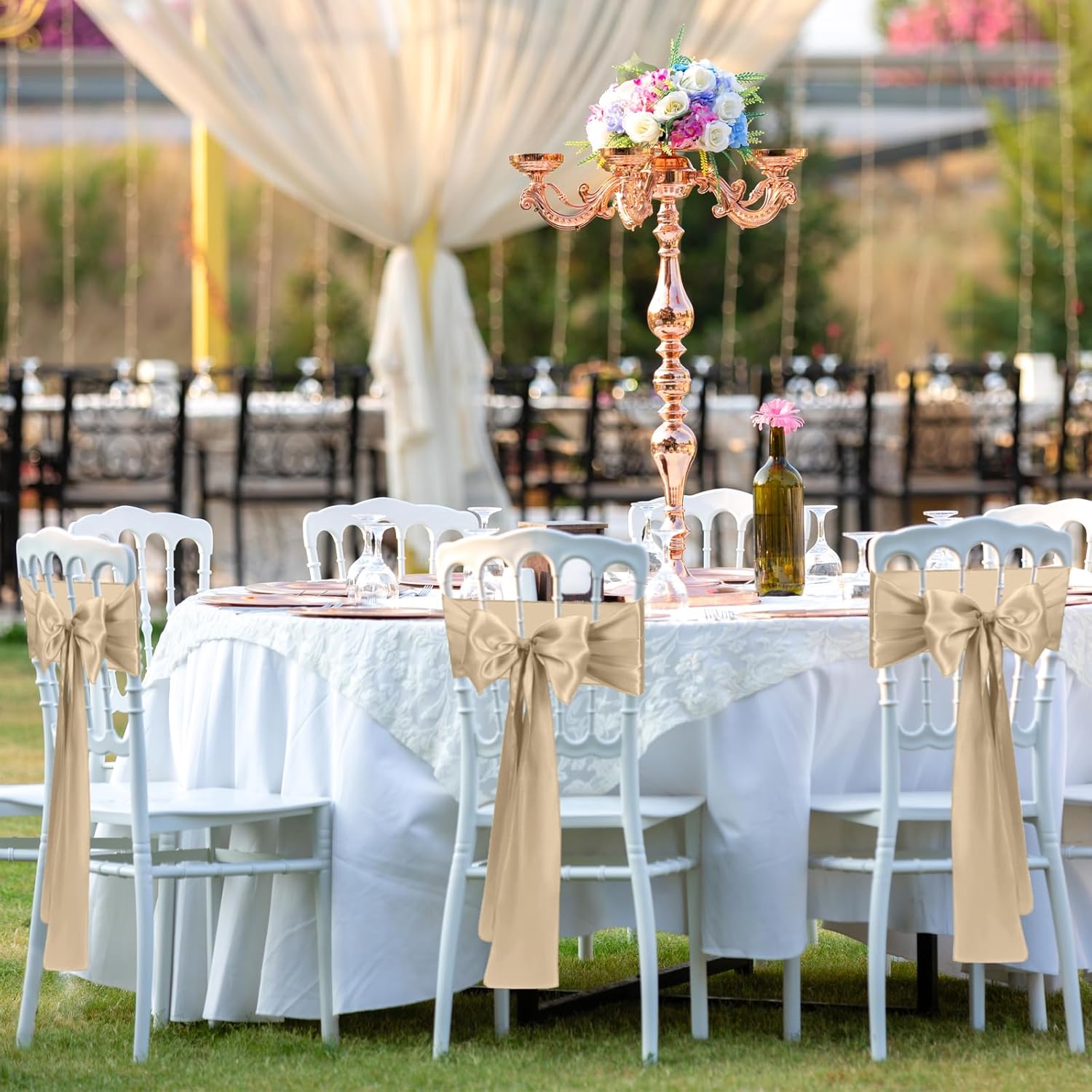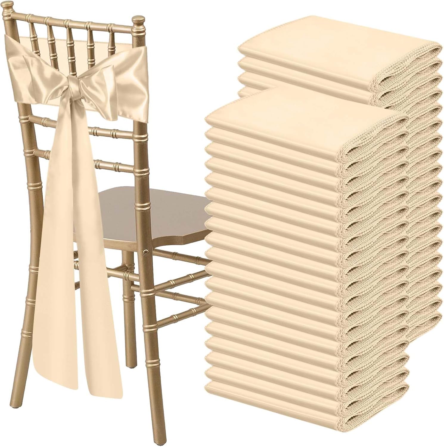 Satin Chair Sashes Bows Universal Chair Ribbon Ties Back Sash for Wedding Party Reception Events Banquets Hotel Event Chair Cover Decoration (7x108 inch) (100, Champagne)