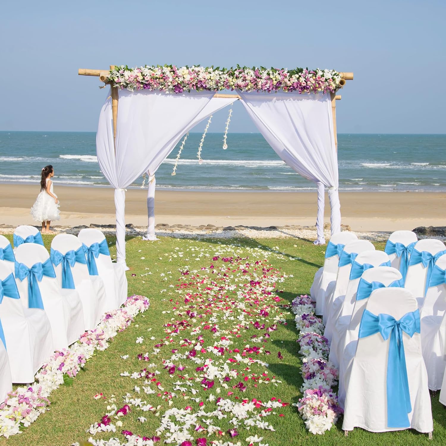 Satin Chair Sashes Bows Universal Chair Ribbon Ties Back Sash for Wedding Party Reception Events Banquets Hotel Event Chair Cover Decoration (7x108 inch) (100, Baby Blue)