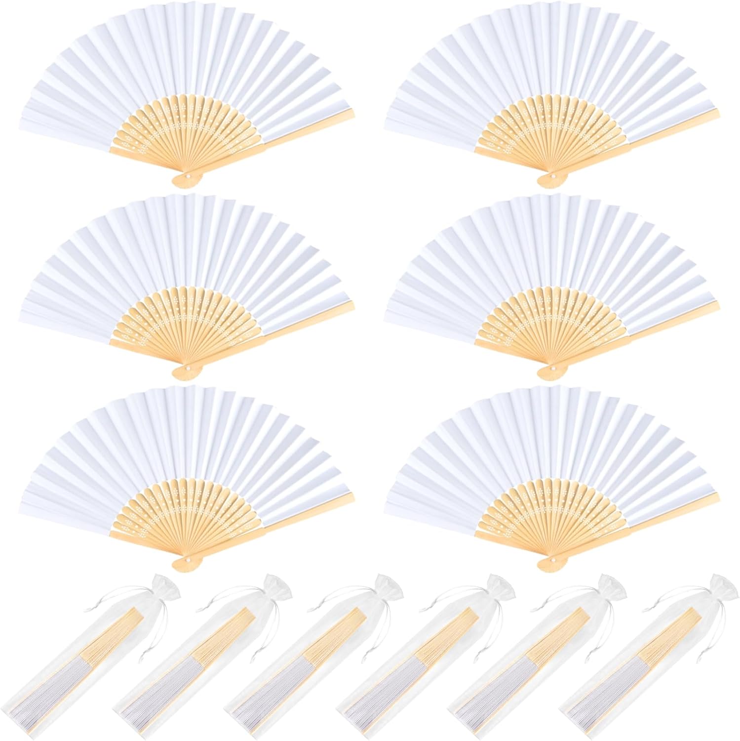NEBURORA 6Pcs White Handheld Paper Fans 8.3 Inch Hand Held Bamboo Fans Foldable for Wedding Decoration Outdoor Party Favors DIY Decoration Dancing Photography Props