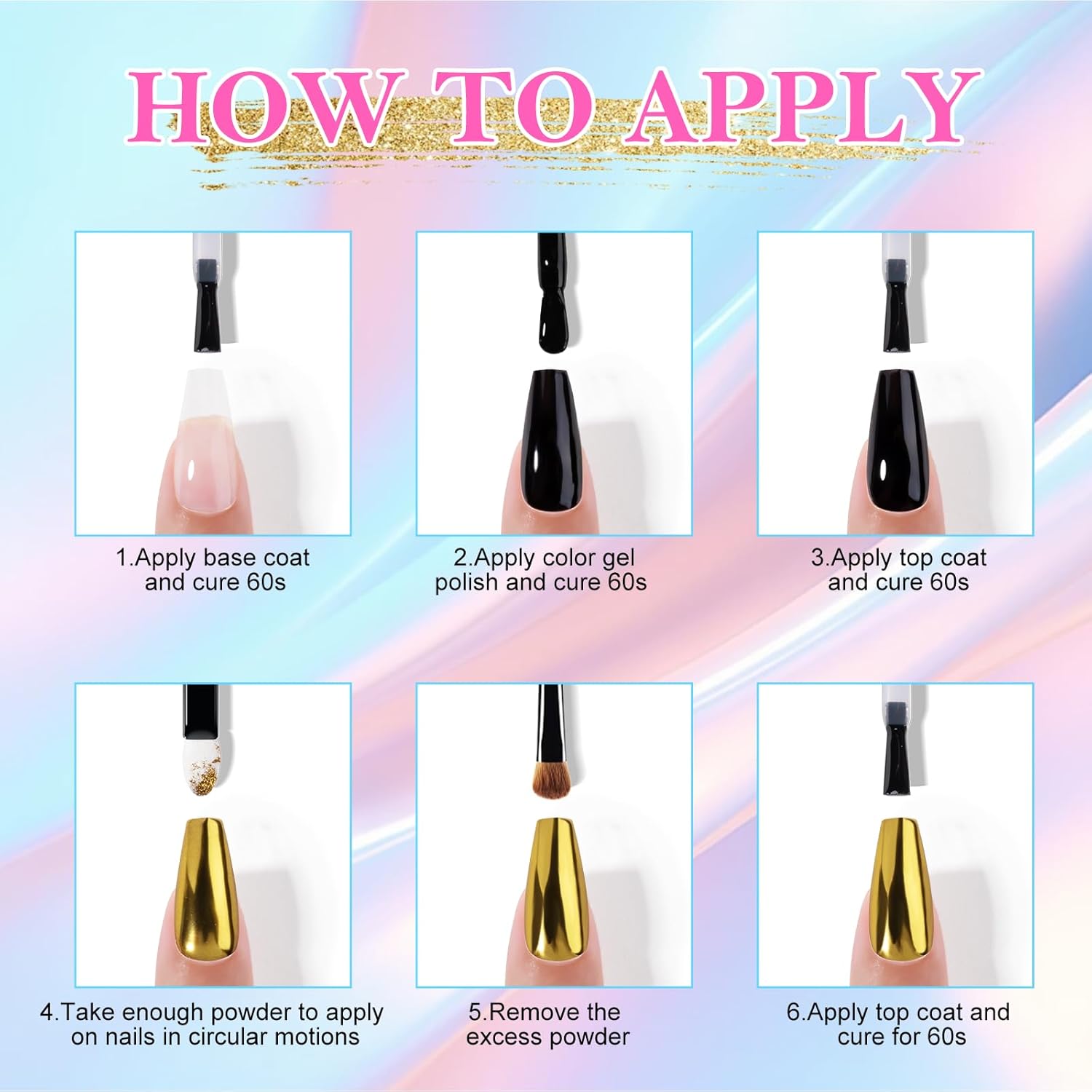 • Versatility: These powders work with gel polishes (color gel, gel base, and gloss gel top). Some traditional polishes may be compatible. Suitable for natural, UV gel, acrylic, or artificial nails. Application is simple. Easily enhance nail art with rhinestones, nail films, or other accessories
