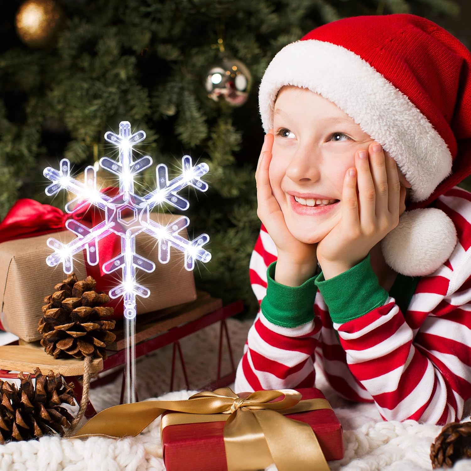 • Gift: these snowflake light Decorations are more than just decorations; They are a gift choice for those who appreciate the holiday; Whether for Christmas, a birthday, or Thanksgiving, they bring light and joy to any occasion, delighting recipients with their brilliant glow