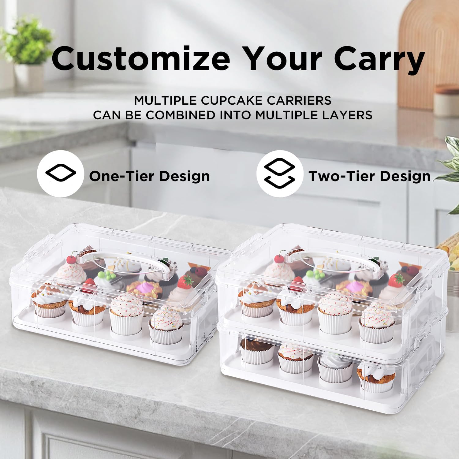 • 【Multipurpose Design】: This versatile cupcake carrier is also ideal for carrying cakes, cookies, muffins, or other baked goods thanks to its spacious and versatile design. Ideal for picnics, birthdays, and bake sales.