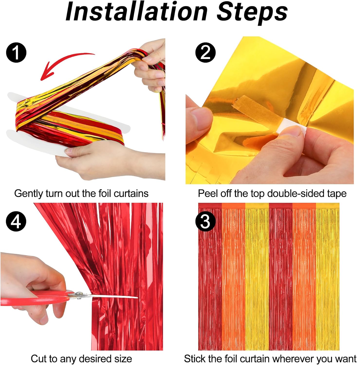 • Package Includes: You will receive 2 pcs red orange gold foil streamers, each measuring 3.28 ft x 7.05 ft, oversized to be cut to your desired length.