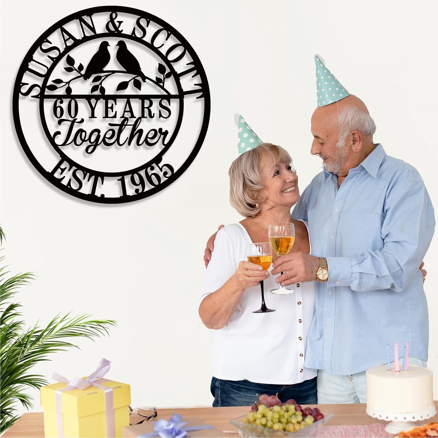 Personalized Wedding Anniversary Sign Gifts, Custom 50th 40th 65th 60th 25th 70th Anniversary Metal Sign, Wedding Gifts for Couples, Custom Name Sign, House Warming Gifts New Home
