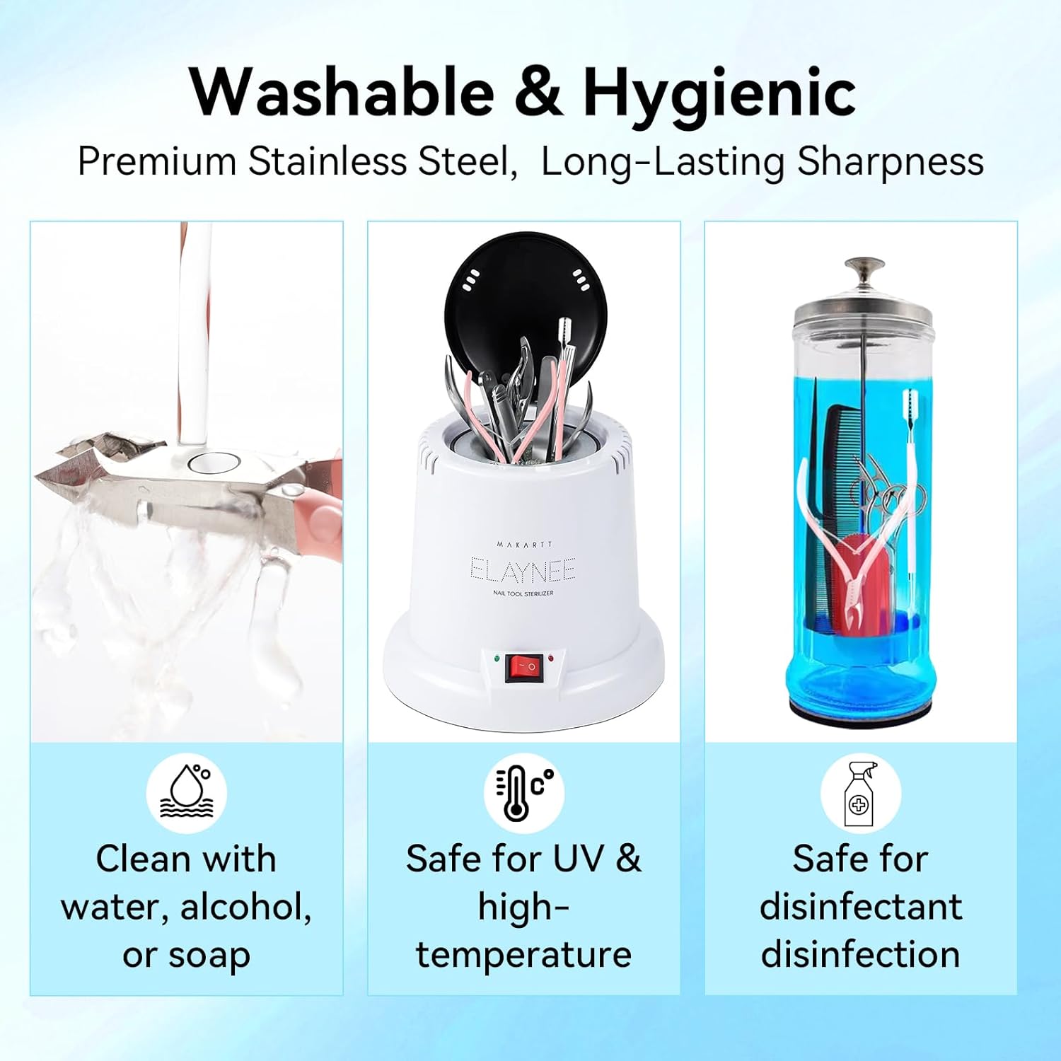 • Reusable & Easy to Clean: The cuticle kit is made of high-quality stainless steel that resists rust and dulling. Wash with water or alcohol and disinfect using UV or heat sterilization